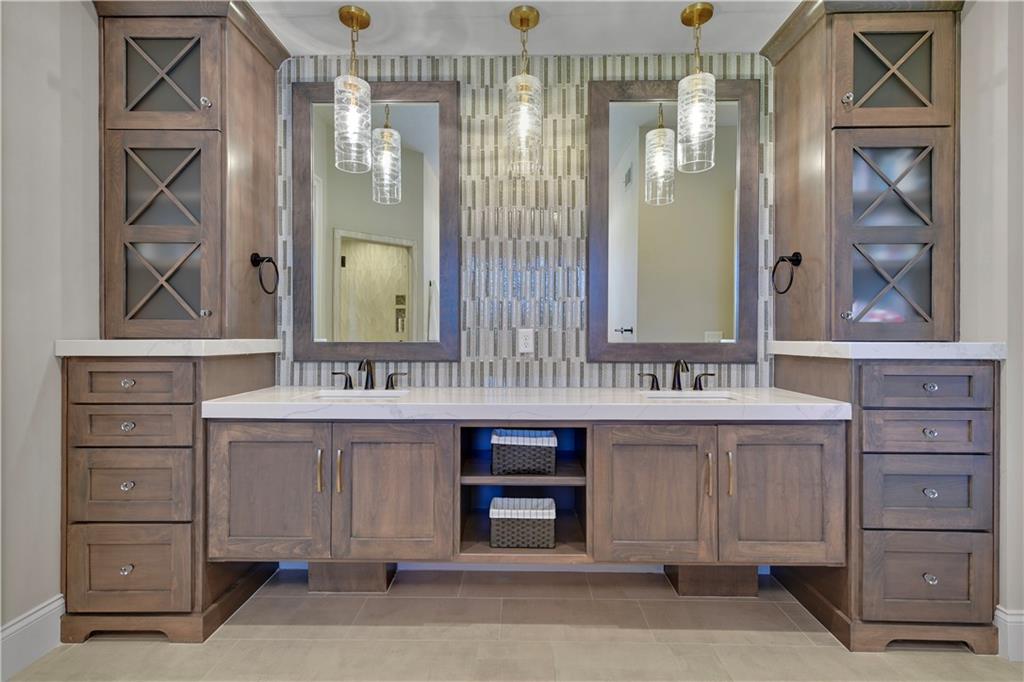 Welcome to this Bickford-designed, Koehler custom-built masterpiece—an extraordinary home that perfectly blends sophistication, comfort, & resort-style living. Nestled on a picturesque ¾-acre lot backing to greenspace, this home is a true sanctuary with every detail thoughtfully curated for an exceptional lifestyle. Stately custom iron doors welcome you into light-filled living spaces featuring a dramatic living room which dazzles with walls of windows, custom built-ins, and a designer ceiling with cove lighting. A cozy hearth room features a soaring vaulted ceiling with beams, and a two-story fireplace.The gourmet kitchen is a showstopper, boasting a massive quartz island, custom-painted cabinetry, beverage refrigerator,luxury appliances, double dishwashers, & a spacious butler’s pantry. A large mudroom with built-in desk and cabinetry ensures organization meets style. Retreat to the primary suite, with a box-beam ceiling, built in desk, spa-like bathroom with double vanities & a dreamy walk-in closet with its own laundry. Upstairs, you'll find three additional bedrooms each feature private baths and walk-in closets, plus a hidden playroom tucked into the dormer space.The lower level is a wow! It includes a vast rec room, temperature-controlled wine cellar, full bar, dedicated gym, fifth bedroom, full bath, sauna, anti-static AV room, and an oversized walk-in pantry with refrigerator. A 6-car garage with epoxy flooring, built in storage, & a 50-amp circuit provides room for all the cars & toys. The showcase backyard includes an oversized 20' x 50' heated saltwater pool with spa, infinity-edge waterfall, & automatic cover—an entertainer’s dream! It is complemented by two firepits & a covered deck with heaters, fireplace, and retractable screens. A full outdoor kitchen on the lanai is surrounded by extensive landscaping & a fenced yard. Enhanced with smart-home technology, home offers both cutting-edge convenience & timeless craftsmanship.