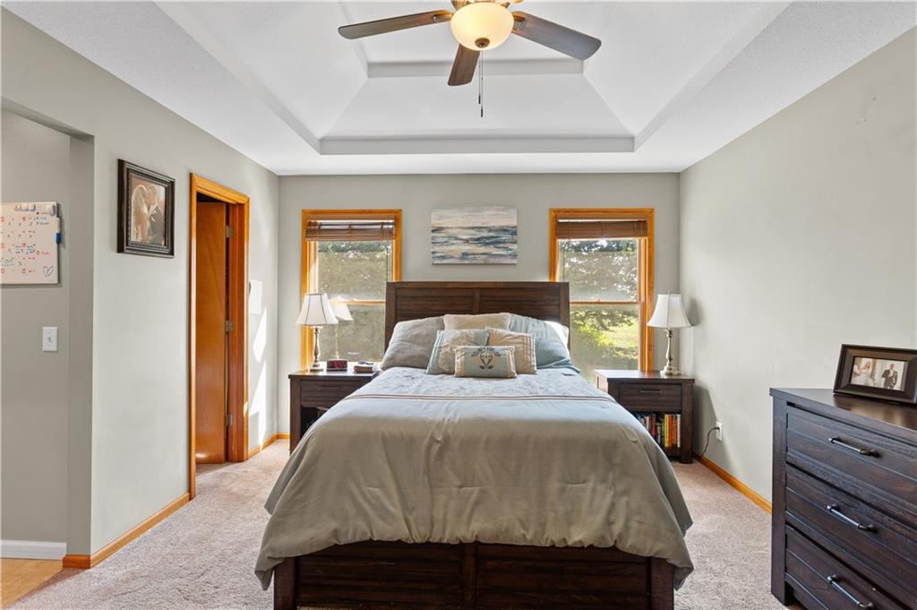 This beautifully maintained true ranch home features a spacious open floor plan and a host of modern upgrades. The updated kitchen boasts custom cabinetry, granite countertops, stylish fixtures, and designer lighting—perfect for both cooking and entertaining. The inviting living room showcases soaring vaulted ceilings, a striking stone fireplace, and gleaming hardwood floors, creating a warm and elegant atmosphere. Enjoy peaceful summer evenings on the serene back deck or unwind on the large front porch. The primary suite includes an updated bathroom with tiled floors and a luxurious walk-in shower. Located in the quiet and desirable Prairie Estates neighborhood, this home offers unbeatable highway access and is just steps from the elementary school—making it ideal for families and commuters alike!