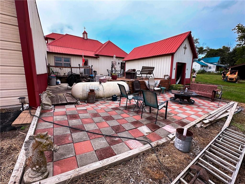 This is Tract 1 of 2 -This is an online AUCTION - Bidding will open October 21, 2025 at 6pm and close with the sellers confirmation on Nov 18, 2025 at 6pm. For the bidding packet visit Bidheritage.hibid.com or BuyHeritage.com Relax on the deck on the front of this property and watch the sunset over the gently rolling county hills. Inside you will find a 3 bedroom, 1 full bath older remodeled home in the small country town of Fairport in Dekalb county. This home sits on 1.3 acres and the vacant lot of .37 acres also sells with the property. Inside you will find an older updated rustic, country feel with the primary bedroom downstairs and 2 bedrooms upstairs with a bonus room in the middle. The main level you will enjoy the kitchen, dining room, full bath, laundry room and another bonus room off the living room, great for a small office. From the kitchen walk out onto a large deck, it does need some replacement, it leads to the large drive through garage and they used the small building on the deck as a summer kitchen where they canned foods in season. Looking off the back deck, they had horses on the property and several outbuildings to accommodate them. 3 wells are on the property as well as 220 electricity for camper hookups. It is a great retreat for the hunter and fisherman as work stations are located throughout the property.