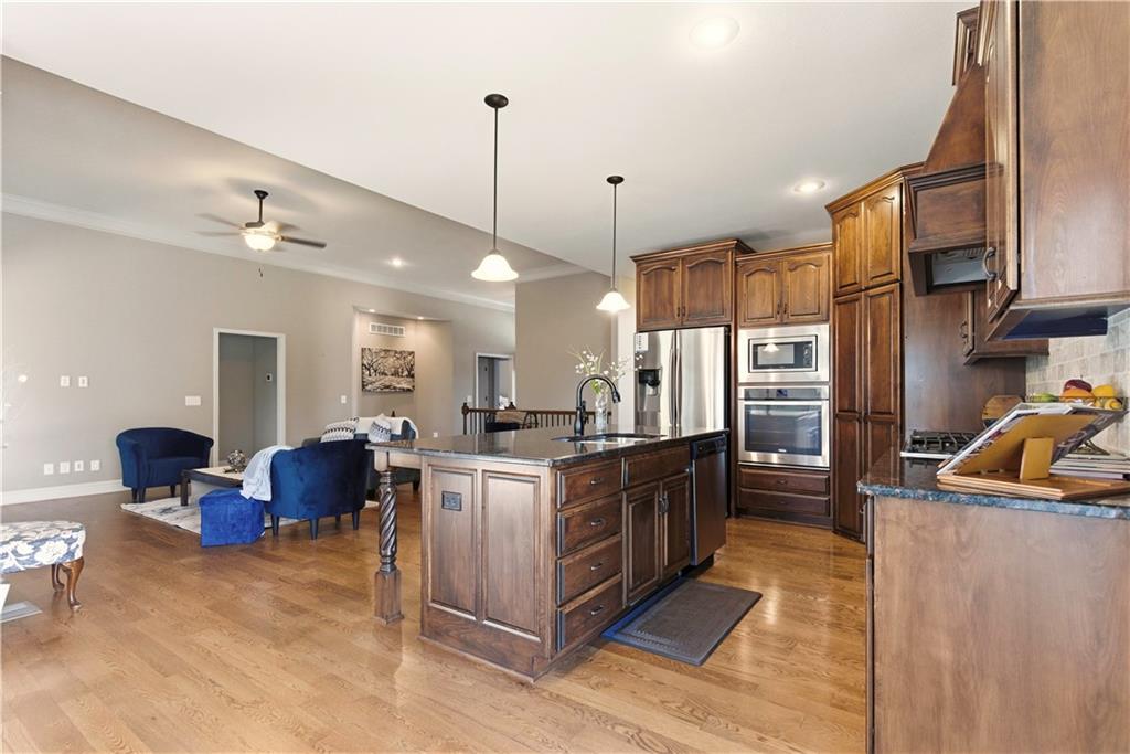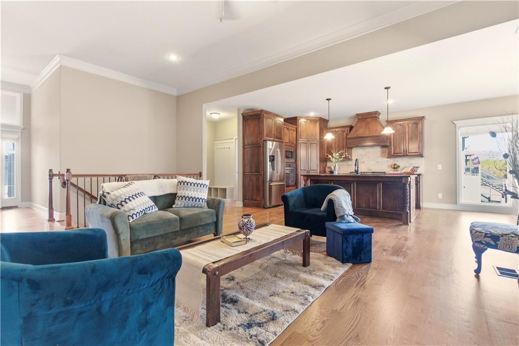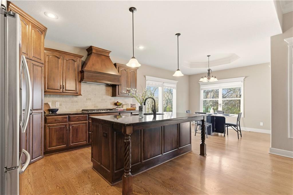 BOM - no fault to the sellers. This has all you need (plus extra) without the wait of a build job. Impeccably Maintained Reverse 1.5-Story Backing to Green Space! This stunning home has been lovingly cared for and offers a spacious, open layout that’s perfect for both everyday living and entertaining. Featuring 4 bedrooms — 2 on the main level and 2 on the lower level—you’ll enjoy flexibility and room to grow. With two living spaces and a bonus area just waiting for all the many uses you will dream of, you will find a perfect layout and one that has received many compliments. The main level boasts a bright, open kitchen complete with hardwood floors, a frig, a walk-in pantry, and convenient main-level laundry tucked behind the kitchen. The expansive great room flows beautifully into the kitchen and dining area, creating a warm and welcoming atmosphere. And, it's perfect for those who want to open up the shades and capture the green space and nature right in your backyard. You can enjoy this lovely view right from your living room, or soak in the view from the deck right off the kitchen. To top off this peaceful atmosphere, enjoy the see-through fireplace both inside and out. Perfect for entertaining as well. Downstairs, the finished basement is an entertainer's dream and includes a wet bar, rec room, and dedicated media room—ideal for movie nights or hosting parties and game nights. You can also use this bonus space for a kids play area as well. Also, off of the family room is another outside space. The covered patio is perfect for more outside enjoyment and added privacy and tranquility. Shall we say - 'great place to put your future hot tub?' ;) Plus, this home also has 2 small storage areas AND that third car garage, adding to the many great features. Call and set up your showing today.