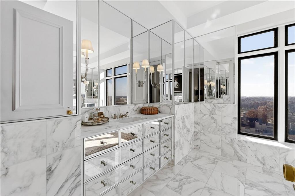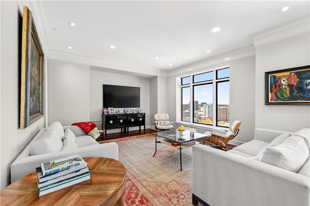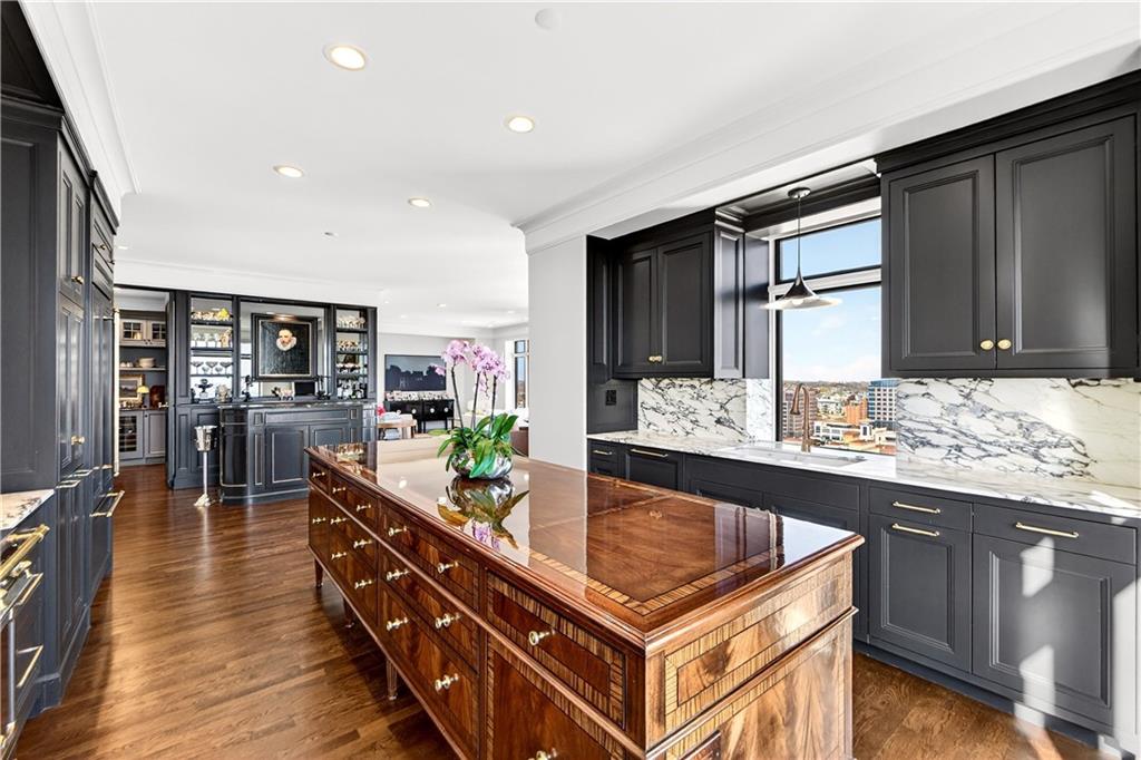 Experience elevated living in this beautifully reimagined 2-bedroom, 2.5-bath condominium perched on the 14th floor of the prestigious Alameda Towers. Every surface has been thoughtfully updated, showcasing impeccable craftsmanship and designer finishes throughout. The completely renovated kitchen is a chef’s dream! It features custom Bryne cabinetry and a one of a kind handcrafted center island featuring marble slab countertops. A 5-burner La Cornue range with double ovens anchors the space, complemented by additional Viking double ovens, making this a true delight for entertaining. The sleek butler’s pantry includes a new ice maker and wine fridge, and a reconfigured layout opens the kitchen to the spacious family room with a custom bar—perfect for entertaining. Fresh paint throughout, including a lacquered Monrose-painted entryway, enhances the sophisticated ambiance. The expansive dining room boasts a new statement light fixture, while the office is bright and functional with built-ins and large windows. The oversized primary suite offers hardwood floors, a completely renovated marble bathroom with mirrored vanities, abundant built-ins, and a massive custom closet. The secondary bedroom also features hardwoods and a newly refreshed en-suite bath with designer fabric walls. A stylish half bath adds both convenience and comfort—perfect for guests. Washer and dryer remain for convenience. Every inch of this residence has been modernized with quality and style—offering an exceptional blend of luxury, comfort, and location just steps from the Country Club Plaza.