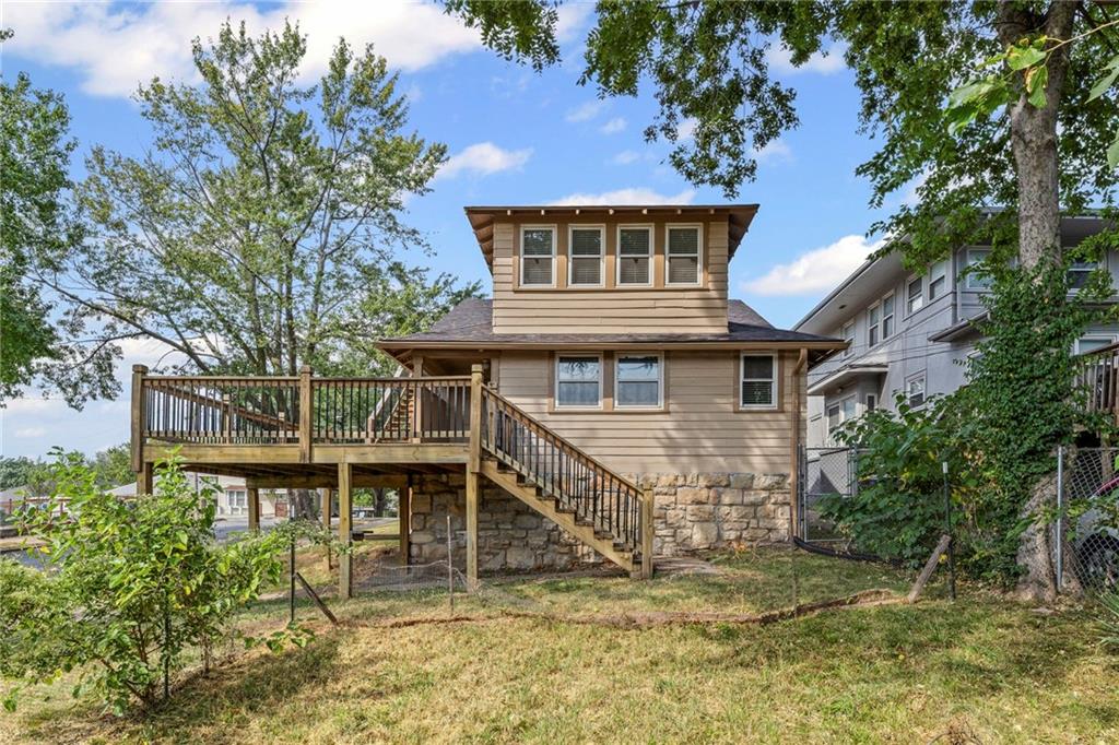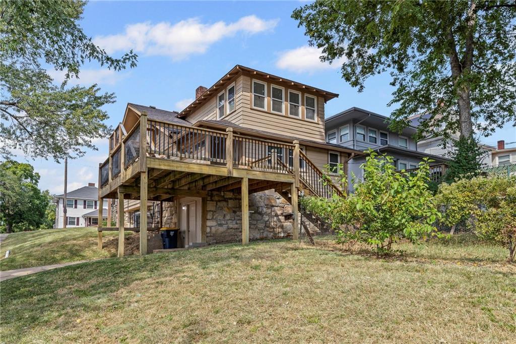This spacious 5-bedroom, 2-bath home offers 2,400± sq. ft. of finished living space on a 5,404± sq. ft. corner lot. Featuring hardwood floors, original wood accents, and a beautiful hearth with built-in shelving, this property blends timeless charm with practical updates. Two full kitchens provide excellent flexibility for multi-tenant or extended family living, while the newly added second-floor deck with a dedicated entrance enhances privacy and convenience. Enjoy outdoor living on the large front porch or in the partially fenced yard surrounded by mature trees. Additional highlights include updated windows, a property tax abatement that transfers with the sale, and low real estate taxes of just $764.85. Ideal as a family home or investment property, this is a rare opportunity you won’t want to miss.