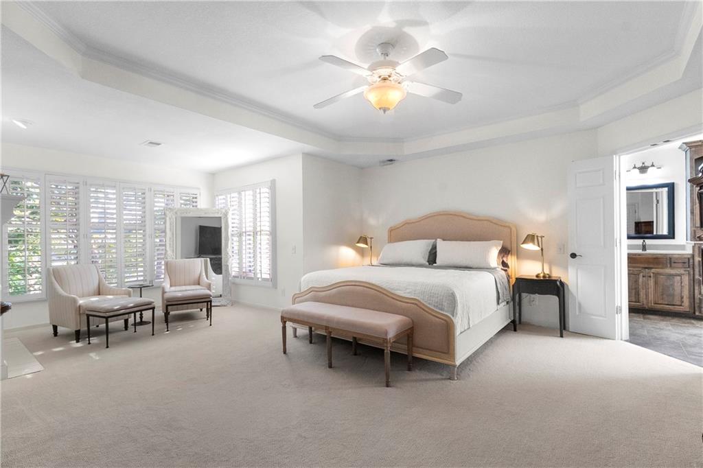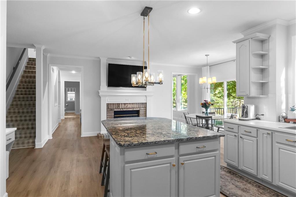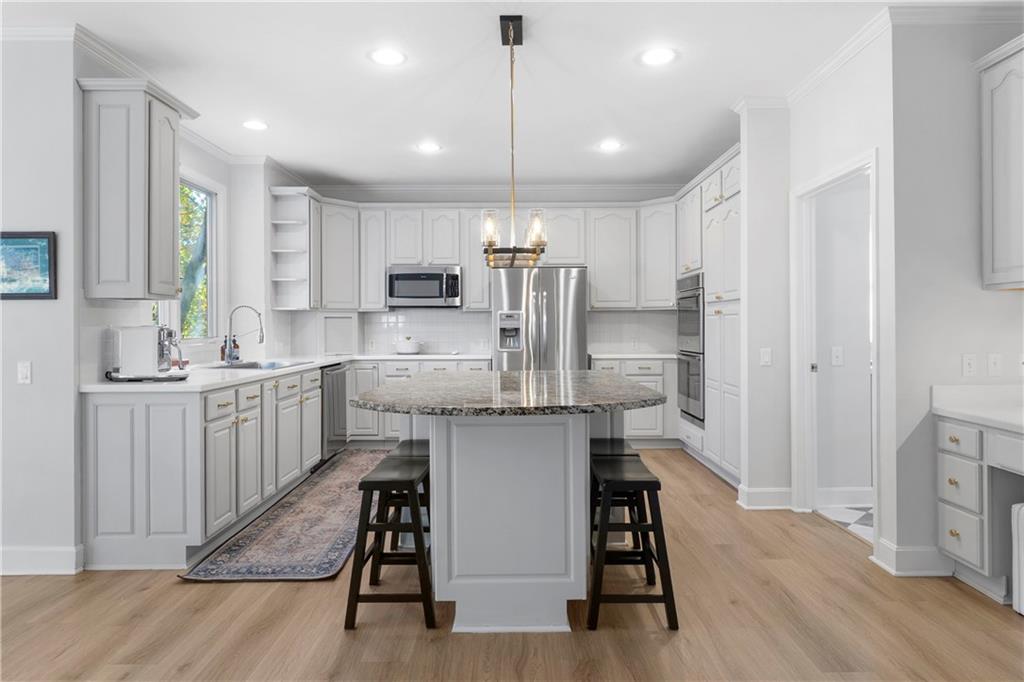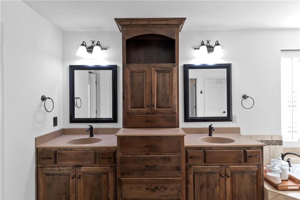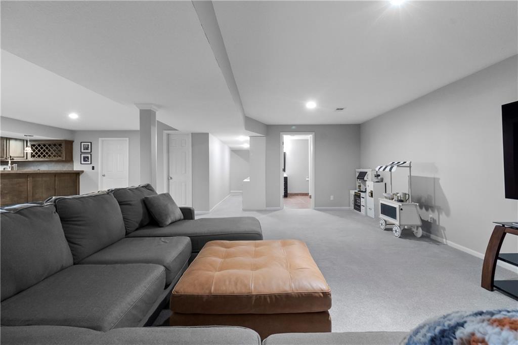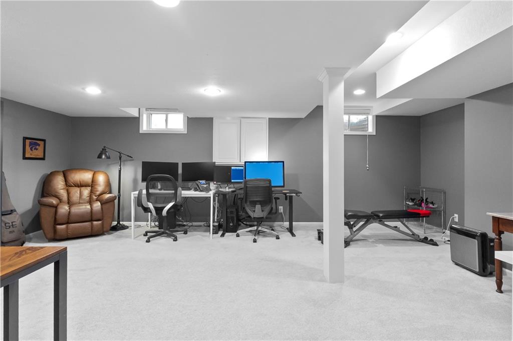 Welcome to this charming residence in the sought after neighborhood of Steeplechase in Leawood, where Old World elegance meets modern sophistication. This expansive home offers 4 bedrooms and 4.5 bathrooms, with carefully designed living space on a generous lot. Step inside to exquisite new luxury vinyl flooring and plush carpeting flowing seamlessly through the main and upper levels. The refreshed kitchen is a chef's delight, boasting freshly painted cabinets and new hardware all under stylish new light fixtures. The large kitchen island layout is perfect for both culinary creations and casual gatherings. The hearth area with fireplace is the perfect spot to entertain guests comfortably while you cook. Natural light pours into the two-story great room, highlighting the graceful ambiance and the cozy fireplace that serves as the room’s centerpiece. The home’s layout includes a newly updated laundry/mud room for added convenience. This 2-story home's layout offers an abundance of function space. With a large office, living room, formal dining room, great room and kitchen all on the first floor, there is ample space for those who need options for one or multiple work from home spots! Or room for a kids play area on the main level without sacrificing other much needed productive areas. Upstairs the primary suite offers a sitting area, oversized bathroom with double vanities, soaking tub, walk-in shower & TWO walk in closets. Entertain guests in the daylight basement, featuring a 5th non-conforming bedroom, with a full bathroom and wet bar, creating an ideal guest retreat. Step outside onto the new back deck to enjoy the fenced yard—a serene outdoor oasis ideal for leisure and entertainment. Nestled near the vibrant Prairie Fire shopping center and the scenic Ironwoods Park, this home offers an enviable location with a blend of tranquility and accessibility to local amenities. The Steeplechase neighborhood also boasts it's own community pool. This home truly has it all!