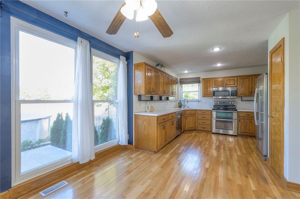 BEAUTIFUL opportunity in coveted Madison Place subdivision! BRAND NEW exterior and interior paint! NEW HVAC! Updated windows! The kitchen boasts stainless steel appliances and BRAND NEW quartz countertops. Kitchen overlooks the breakfast room and great room, perfect for seamless everyday living and entertaining. Kitchen walks out to fenced backyard with pergola and updated patio where you can spend the evenings and weekends dining al fresco! Breakfast room AND Formal Dining/Sitting room on main level. Upstairs, the large primary ensuite features soaring ceilings, a generous walk-in closet, and a spa-like bath with whirlpool tub and double vanity. Convenient bedroom level laundry! The finished basement includes additional insulation in exterior walls and soundproof office! Escape downstairs to get work done in privacy or enjoy movie night! Ample storage opportunities in the unfinished part of the basement. The oversized fenced backyard is perfect for gatherings and enjoying the outdoors. Spend summer afternoons in your personal oasis relaxing in your pool! Located in the award winning Olathe School District near walking trails, parks, shops, dining and easy highway access! Welcome Home! Taxes and above ground SqFt per county record. Basement SqFt and Room sizes approx. No preferences or limitations or discrimination because of any of the protected classes under Fair Housing.