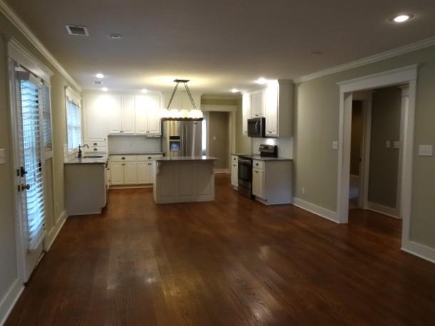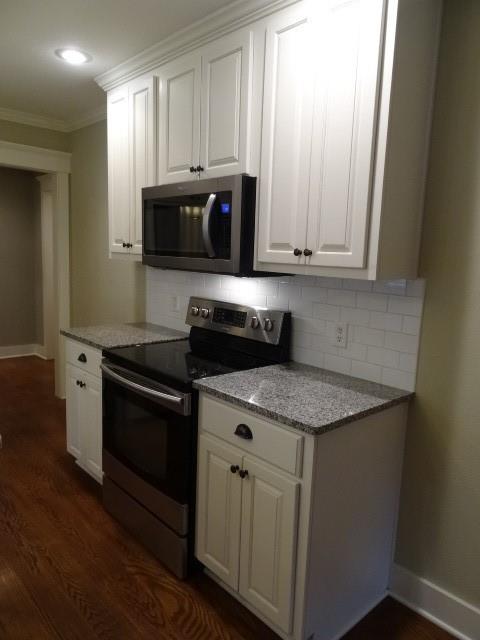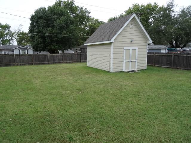 1575 sq. ft. remodeled to studs in 2013. 3 BR, 2 BA, wood floors in Great Room/Dining Area/Kitchen. Carpet in Bedrooms, Ceramic tile in laundry area and both baths. Kitchen was designed with the cook in mind with lots of cabinets and counter space. Granite counters, all stainless appliances, Island with eating bar on one side, white subway tile backsplash. Around the corner is a fun area that could be a Coffee Bar or Butler's pantry. Coming in the front from a covered concrete porch into a spacious living areas with built in book cases. Recessed lights throughout whole house. Master Suite includes a walk-in closet, pocket door from the hall to the spacious laundry area.(this area has above and below cabinets---lots of storage. Window in this room. Another pocket door into the bathroom with stained cabinetry, solid surface counter, walk-in ceramic shower, ceramic floor, window, another pocket door into the stool area with linen storage. Master BR has east and west windows, ceiling fans, and French doors out to a wood deck. Crown Molding in Master, Kitchen & Great Room. 2 other Bedrooms have carpet floors & ceiling fans. 2 Bedrooms share a full bath. Lots of storage cabinets, shower over tub, ceramic tile floor, window. Utility room has the 200 amp breaker box, door leading to crawl space under house, gas water heater and gas furnace. Very fancy carport with electric outlets & concrete floor, sidewalk to front door. Wood fence around the back yard. 14x18 (2) story lawn bld. It has its own 100 amp breaker box, pull down down stairs to 2nd floor. Siding on the house is Concrete Board, Thermal Windows, Take a look you will not be disappointed.