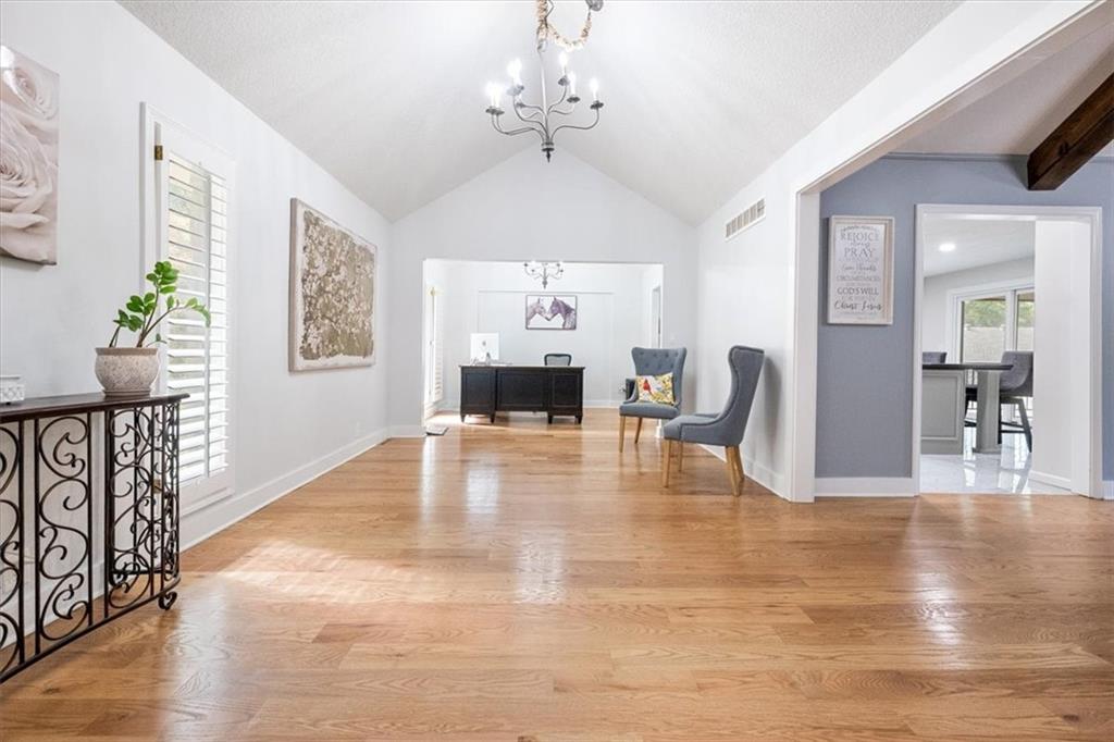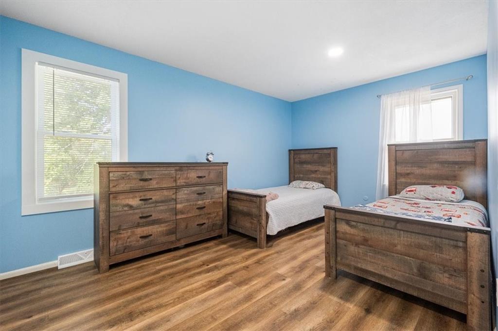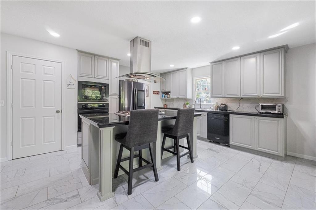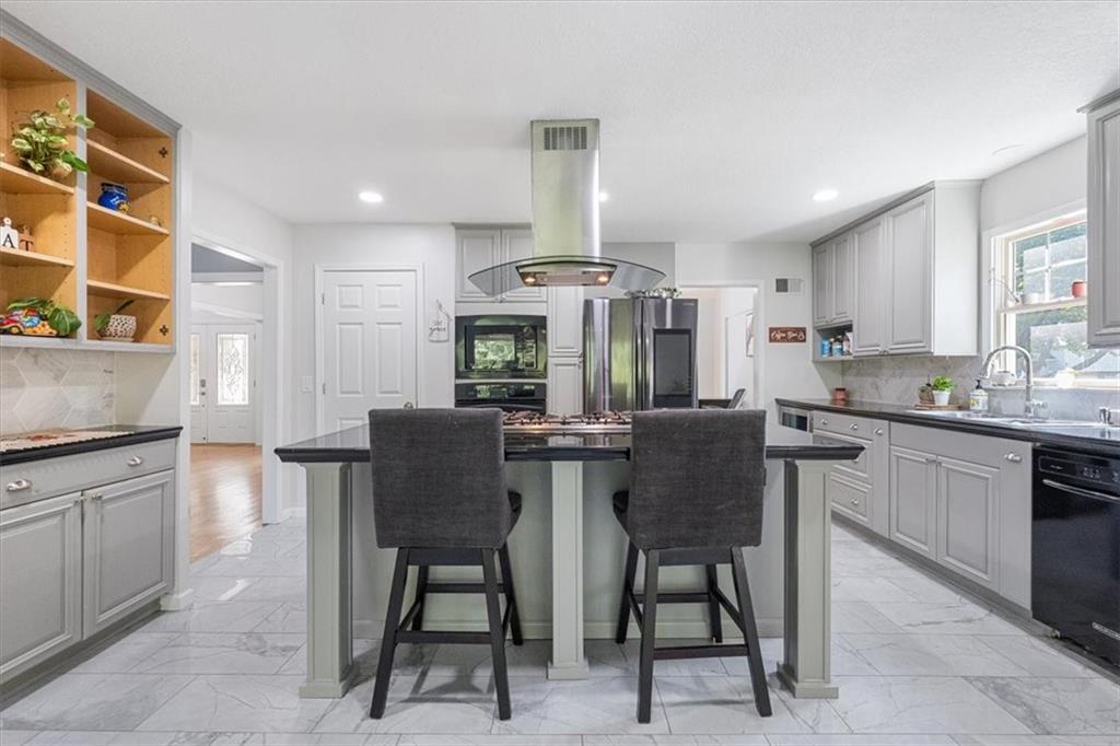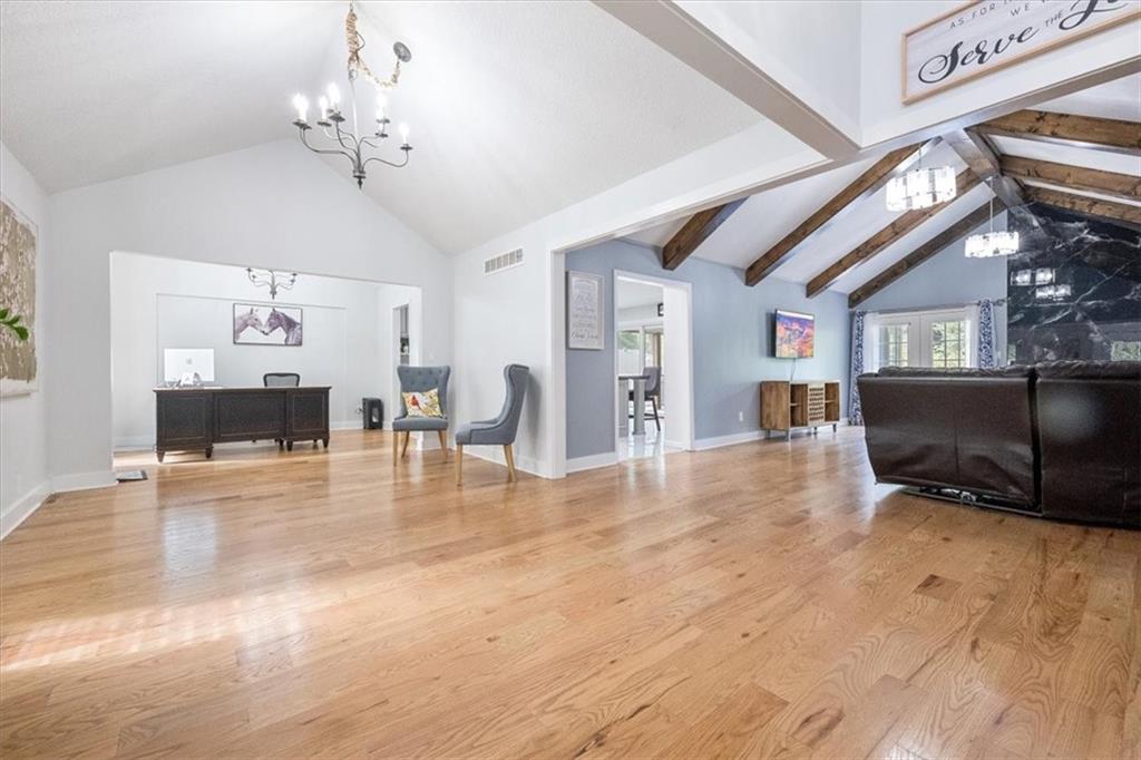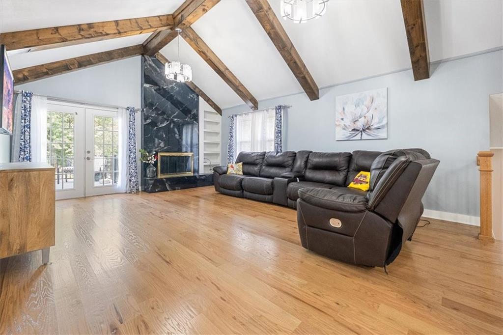 Completely updated & move-in ready in Country Club Gardens, just moments from Blue Springs Country Club Golf Course! Exterior upgrades include a 2-year-old roof, new lap & shake siding, Smart Trim windows, and fresh paint. Relax or entertain on the covered composite deck overlooking a stamped patio & fenced yard. Inside offers new hardwoods, vaulted ceilings with exposed beams, a remodeled kitchen with custom cabinets & granite island, designer tile fireplace, and a fully updated primary bath. Finished basement + brand new high-efficiency HVAC. Simply move in and enjoy!