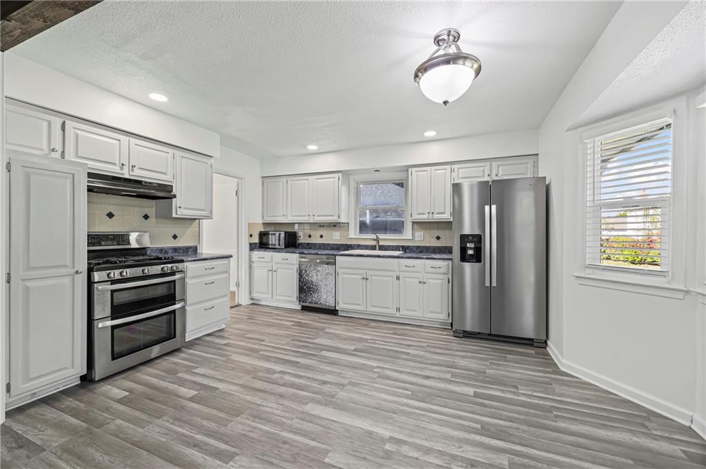 Welcome to this stunning 3-bedroom, 2.5-bath home that perfectly blends comfort, space, and style. Step inside to find three spacious living areas, offering plenty of room to relax or entertain. The open, eat-in kitchen features stainless steel appliances and flows seamlessly into the formal dining room, ideal for family meals or hosting guests. The large master suite is a true retreat, complete with an extra-large walk-in closet and a luxurious en suite bath featuring a dual-head shower for a spa-like experience. The hall bath includes both a shower and a Jacuzzi tub, adding a touch of relaxation and convenience. Enjoy the outdoors in the large, fenced backyard, which includes two patios and a small pond with a peaceful water feature—a perfect setting for outdoor gatherings or quiet evenings. The full unfinished basement offers abundant storage space and is ready to be finished for additional living area. Located in a highly desirable Overland Park neighborhood, this home is close to shopping, dining, parks, and all the best amenities the area has to offer.