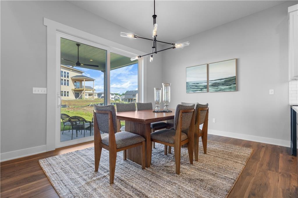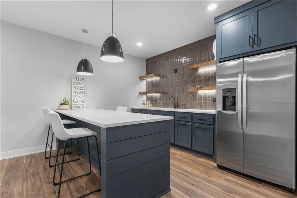 Welcome to The Opus II — a modern farmhouse masterpiece blending timeless charm with sophisticated design. This stunning home features six spacious bedrooms, five full baths, and a dedicated main-floor office, offering the perfect balance of comfort and versatility. The chef-inspired kitchen is the heart of the home, showcasing stunning quartz countertops, an L-shaped prep kitchen, and rose gold cabinet hardware that adds a touch of modern glamour. A convenient boot bench with drop zone keeps daily life organized, while the extended three-car driveway provides both practicality and curb appeal. The great room impresses with a floor-to-ceiling stone fireplace and elegant built-in cabinetry with floating shelves, creating a warm and welcoming focal point. Throughout the home, the modern trim package, wainscoting, and sleek black interior hardware elevate every detail with refined style. Downstairs, the finished lower level is designed for entertaining, complete with a wet bar peninsula, full-sized refrigerator, and an additional bedroom and full bath. Every element of The Opus II reflects thoughtful craftsmanship and luxurious comfort—perfectly suited for both lively gatherings and peaceful everyday living.