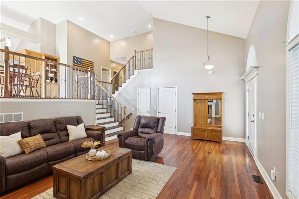 This spacious 2,700+ sq. ft. California split floor-plan offers the flexibility and room today’s buyers are looking for! Featuring 4 bedrooms, 3 full baths, two living areas, and a 3-car garage, there’s space for everyone to spread out and enjoy. Recent updates include an HVAC system less than 3 years old, roof is 4 years old, and tinted windows on the front and back for added energy efficiency and privacy. Step inside to a vaulted living room with hardwood floors, fireplace, and built-ins. The kitchen boasts newer stainless appliances (refrigerator stays), an eat-in dining area, and access to the deck with covered gazebo—perfect for outdoor entertaining. First and second floors include two bedrooms, a full bath, and a primary suite with vaulted ceiling, dual vanity, walk-in closet, jetted tub, and separate shower. Laundry is conveniently located on this level, with washer and dryer included. The walkout basement provides even more living space with a family room, full bath, and additional bedroom—plus a sub-basement offering ample storage. Enjoy the flat, fenced backyard complete with shed, patio and fire pit. Car enthusiasts will love the 3-car garage, finished with epoxy floors, sink, refrigerator, storage area, and a heating unit for year-round comfort. Located in a highly rated Kearney School District, the neighborhood includes a community pool and nearby elementary school, with quick access to groceries, restaurants, and highways. This home checks all the boxes—space, location, and value! Don’t wait to make 904 Crestridge Drive your new home.