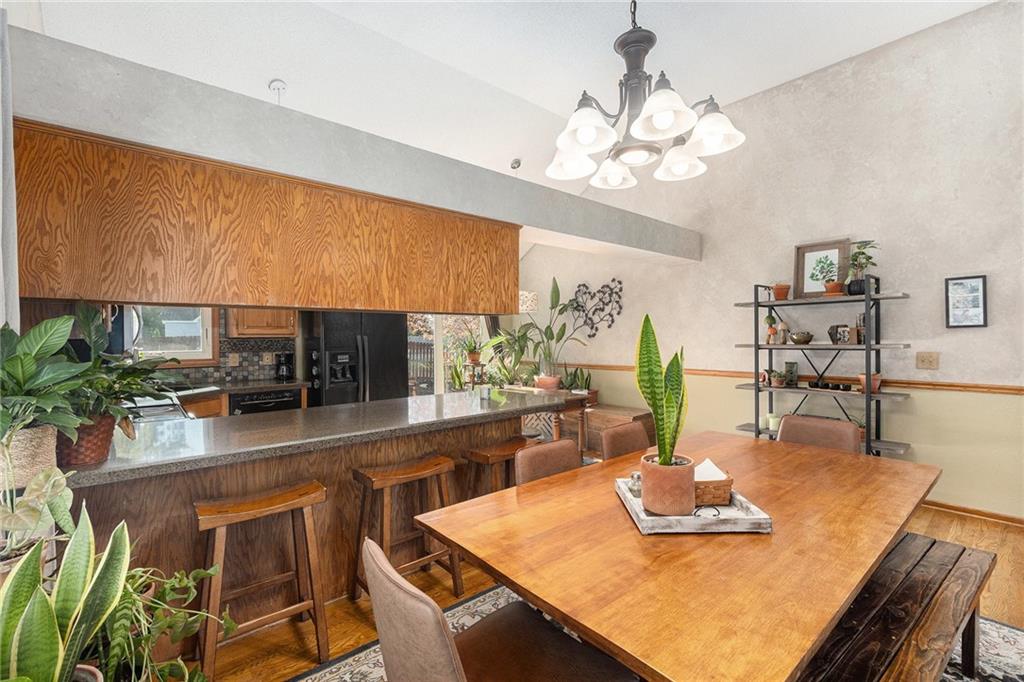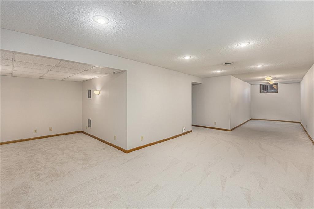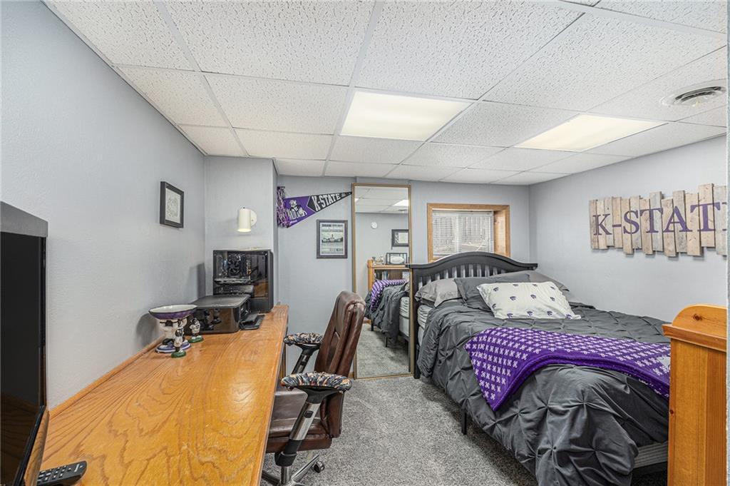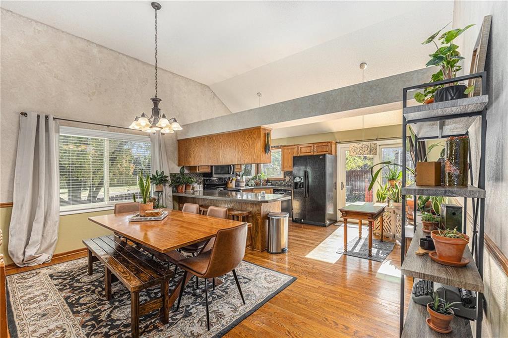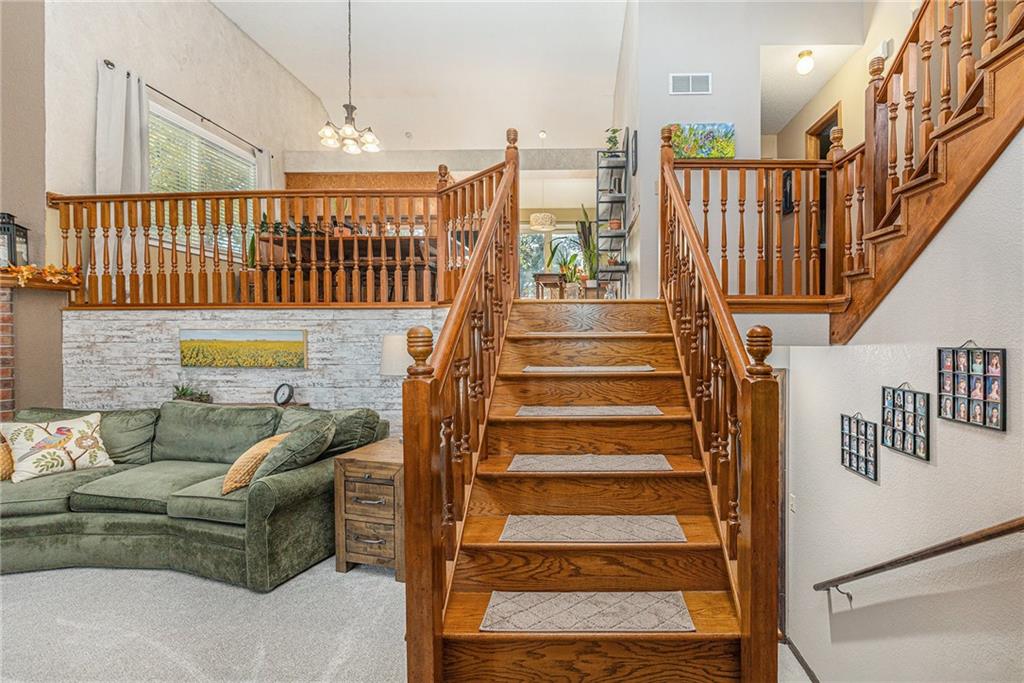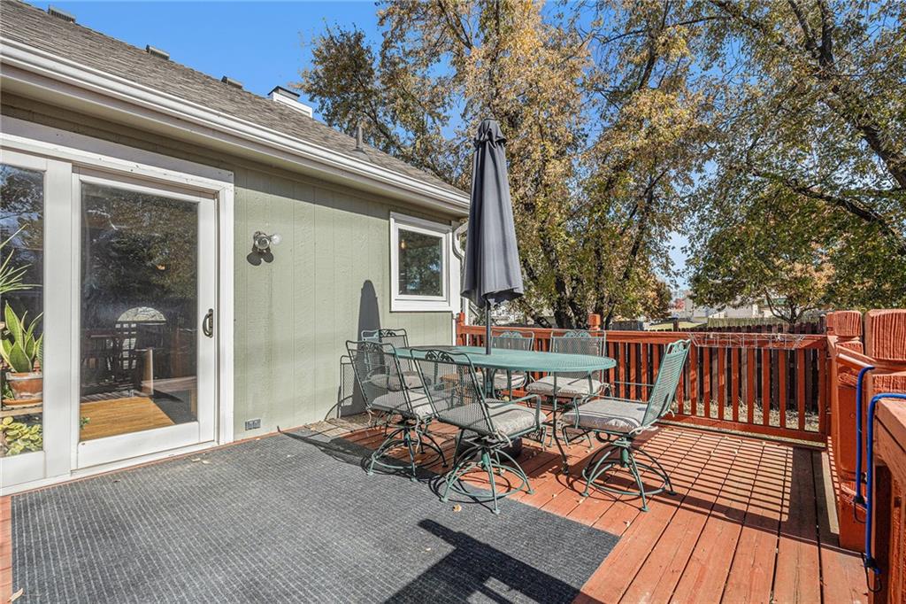 This beautiful home in the Blue Valley School District is close to award winning schools, parks, shopping, and more! Outside you are greeted by mature trees and landscaping and a welcoming front porch. Walk in to a spacious living room with soaring ceilings, a ceiling fan, a cozy fireplace with gas logs, an adorable accent wall, and brand-new carpet. The second level has hardwood floors throughout. A spacious dining room has room for your large table, is convenient to the kitchen, and overlooks the living room. The eat-in kitchen boasts granite counters, a tile backsplash, and handy bar seating. Also on the second level are two large bedrooms with carpet and walk-in closets, a laundry area, and a tiled bathroom with a shower/tub combo. Up a short set of stairs is an amazing primary suite with huge, gorgeous windows, double closets, soaring ceilings, and a ceiling fan. The updated primary bathroom features beautiful tile work, a separate tub and shower, and a double vanity. The basement level has a non-conforming 4th bedroom with a built-in desk, a walk-in closet, and a third full bathroom with tile and shower. The downstairs family room is huge! It is light and bright and boasts brand-new paint and carpet! The two-car garage has a handy work bench area and newer floor utility tiles. Walk out of the kitchen to a deck and a large, fully fenced backyard! The home features so many newer big-ticket items - a brand-new composite roof, durable cement board siding on the front and newer siding on the sides, newer Anderson windows, a newer hot water heater, and more! Don't miss out on this incredible opportunity!