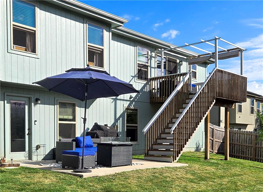 Welcome to Emerson Park, where modern design meets timeless comfort. Built in 2020, this 4-bedroom, 3-bath home offers over 2,200 sq ft of beautifully finished space with custom upgrades that go well beyond builder-grade. The kitchen features GE Profile appliances with air-fry oven, a tiled backsplash, and a walk-in pantry. Main-level living includes a large laundry room, tiled bathrooms, and designer paint and wallpaper accents that add warmth and personality. Oversized windows fill the home with natural light, while the deck and pergola offer stunning west-facing views of Cass County sunsets. All major systems are under five years old, and a one-year home warranty is included for peace of mind. Located within walking distance to Historic Main Street and Wallace Park, with easy highway access and Belton School District attendance, this home blends style, quality, and convenience—the perfect mix of new construction and curated living.