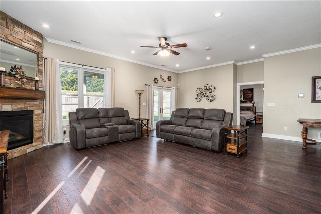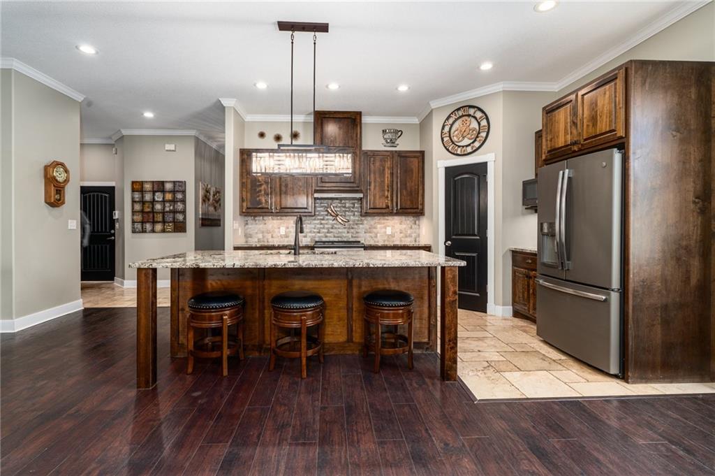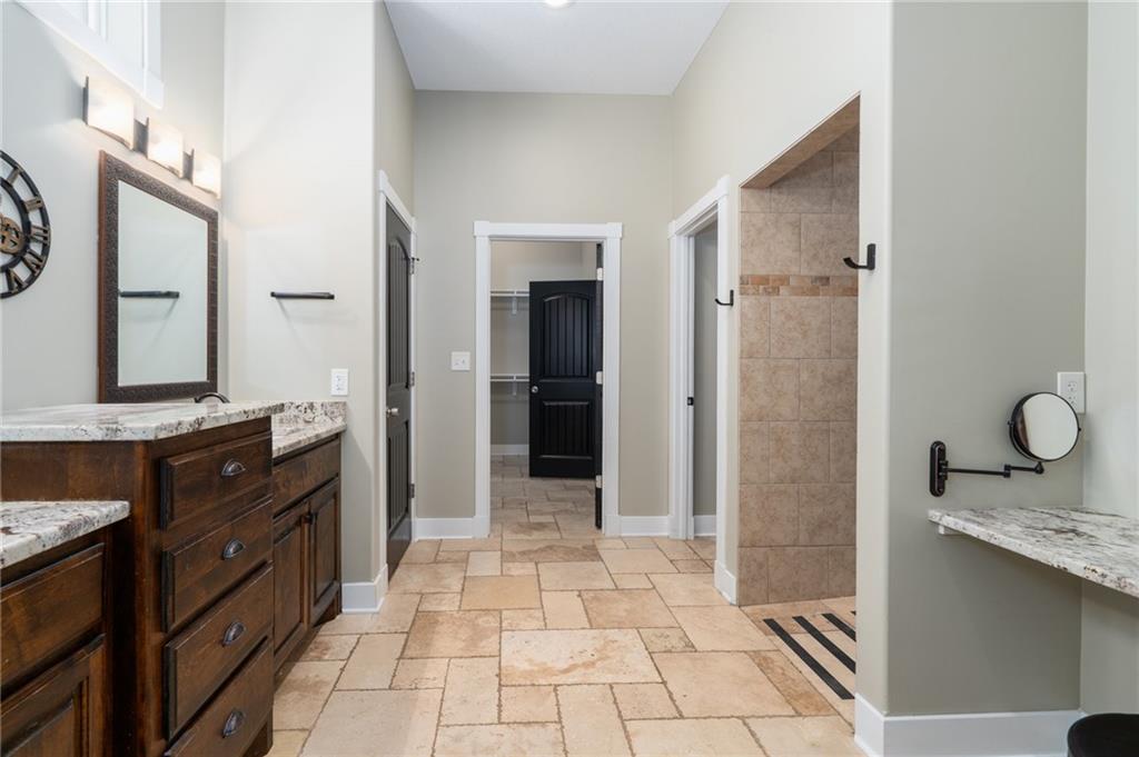 One level ranch with high ceilings and zero entry access. Beautiful master suite with expansive master closet and custom shower. Granite kitchen countertops and ample pantry and high end appliance package. Fenced yard with large covered patio and sprinkler system. Great one level living with no HOA with easy access to walking/biking trails and close proximity to KU and major highways.