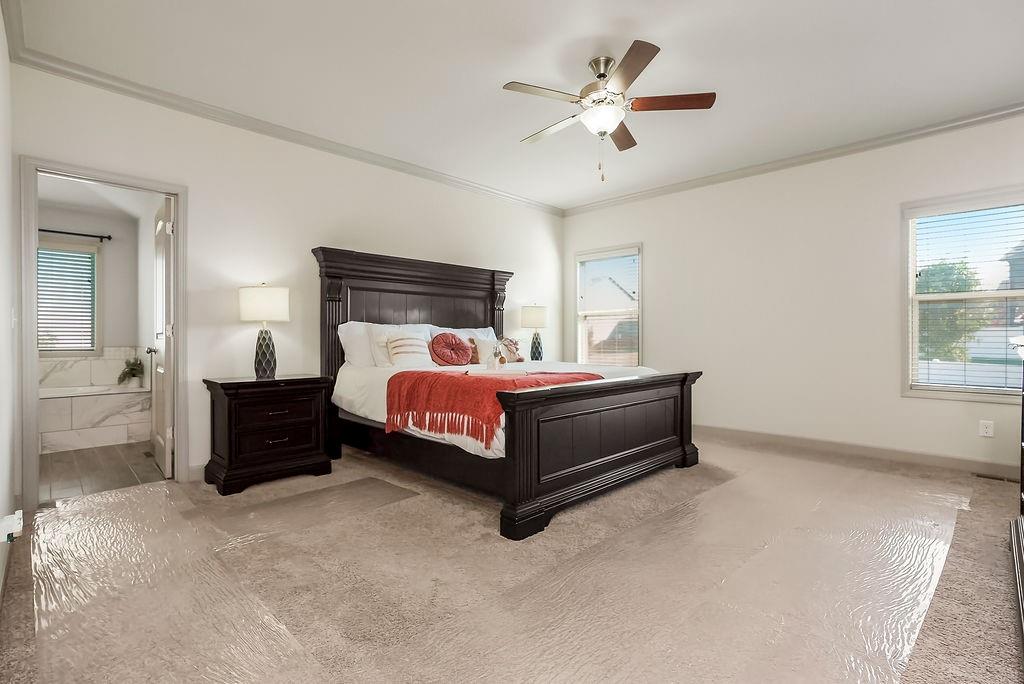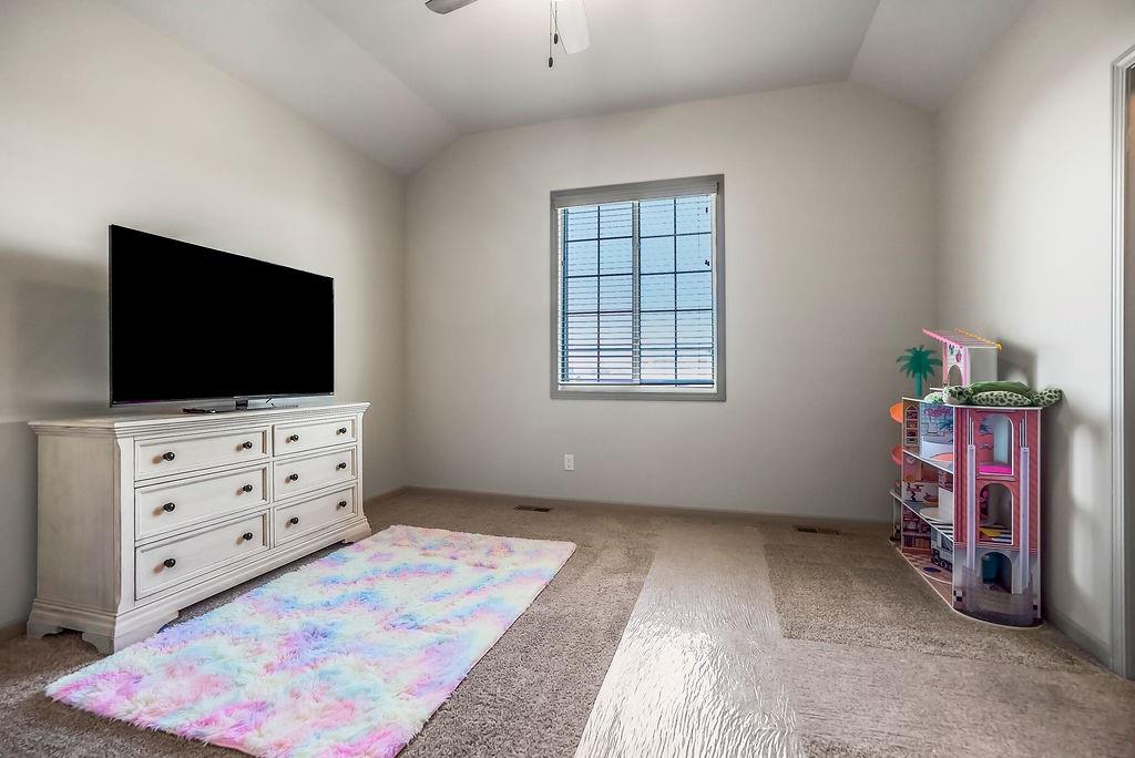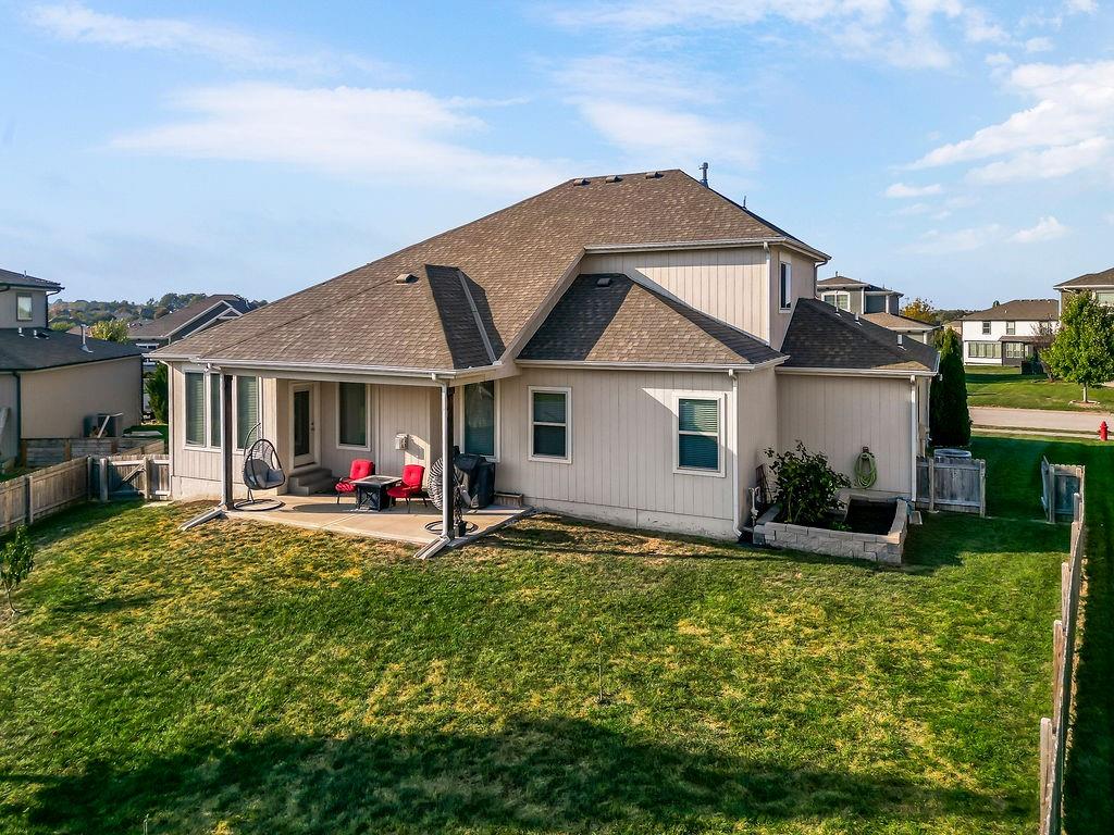 Welcome to this beautifully cared for Cherry Creek II 1.5 story home, tucked within the highly sought after Ridgewood Place at Chapman Farms community. From the moment you arrive, you can feel how much pride and attention has gone into maintaining this home. Step inside and you’re greeted by soaring vaulted ceilings and rich wood flooring that give the great room an inviting, open feel. The main level offers a seamless flow, connecting the living space to a bright kitchen and cozy breakfast area where morning coffee feels just a little sweeter. The dining room, which can easily serve as a home office, adds versatility to the layout.The main level master suite offers the perfect retreat, complete with a luxurious bath featuring a soaking tub and walk in shower. Upstairs, you’ll find three more spacious bedrooms, one with its own private bath and two sharing a convenient Jack and Jill setup, ideal for family or guests. Step outside to a covered 19x10 patio overlooking a well kept yard, perfect for relaxing evenings or weekend gatherings. The backyard also features a fenced area, an L shaped vegetable and fruit garden (approximately 12x7), and several planted fruit trees you’ll enjoy for years to come. Enjoy the large unfinished basement that can be used for storage, a rec room, or easily finished later with the already set up plumbing for a full bath, kitchenette, and bedroom, giving you plenty of options to expand your living space. The home has been professionally power washed, refreshed with new mulch and interior paint, had the carpets professionally cleaned, and is truly move in ready. With an irrigation system, security system, and a 10 year builder warranty, every detail has been thoughtfully cared for. This isn’t just a house, it’s a home that’s been loved, maintained, and ready to welcome its next chapter. You won’t want to miss how beautifully this home has been maintained inside and out.