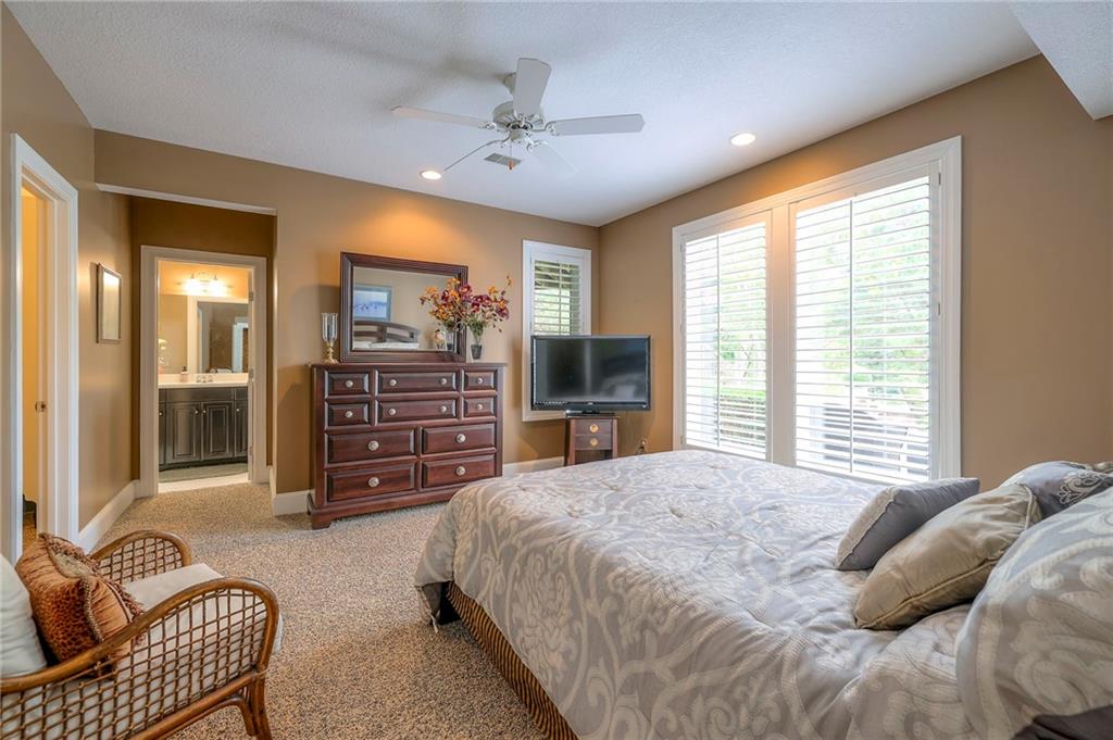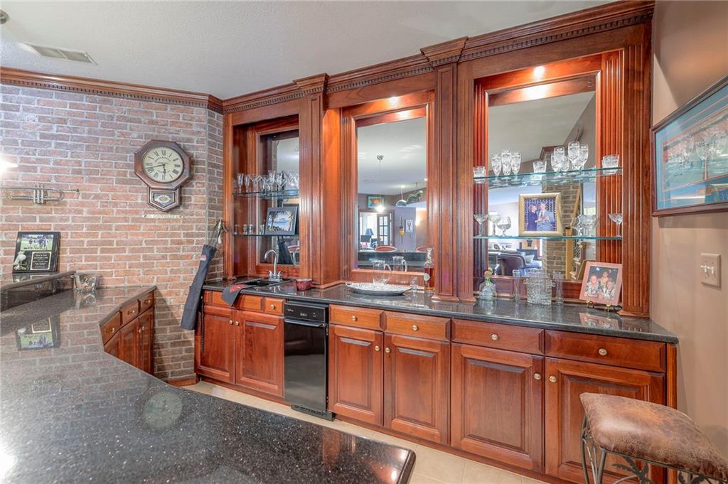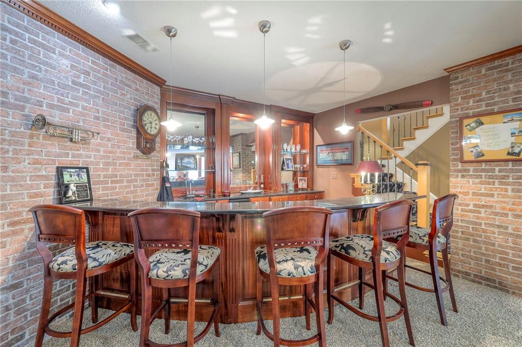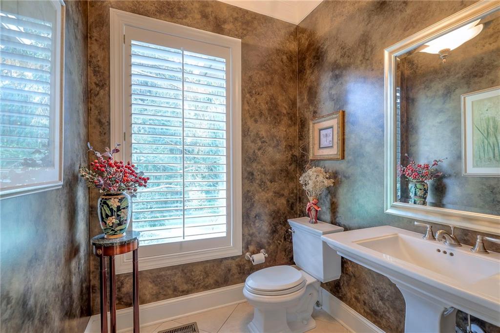 This stunning one-of-a-kind custom builder’s home sits on a private, beautifully landscaped lot surrounded by mature trees and natural views with a creek. Designed and built by the owner as a personal showpiece, every detail reflects craftsmanship and quality. Grand entryway with beautiful custom doors and built-ins. The formal dining and living rooms impress with 14- and 10-foot ceilings, faux-finished walls, and a fireplace with gas logs. The updated kitchen features custom curved cabinetry, quartz countertops, and high-end appliances including a Bosch dishwasher, double convection oven, warming drawer, Franke sink, and induction cooktop. A spacious laundry and hobby room just off the kitchen includes a sink and ample work area. Step out onto the deck to enjoy peaceful outdoor living and a private, wooded backdrop. The owners’ suite feels like you’re sleeping in a treehouse, offering tranquility and luxury with its grand ensuite bathroom. Enjoy the double vanity, walk-in shower with dual showerheads, whirlpool tub, and a large walk-in closet complete with a custom island and built-in dressers. The lower level is perfect for entertaining with a solid mahogany bar topped in granite, brick accents, and a game area with built-in pool table storage. Enjoy the cozy great room with surround sound and a brick fireplace with gas logs. Two spacious bedrooms each have private baths, and a fourth room—currently used as an office—has private exterior access, ideal for a home business. Walk out to the slate patio and firepit surrounded by professional landscaping, complete with irrigation, 21 mature pine trees, and 9 hardwoods. Additional features include custom plantation shutters, a grand circle driveway with cut stone front porch, and an oversized three-car garage with sink and epoxy flooring. This exceptional property perfectly blends craftsmanship, privacy, and comfort in a truly one-of-a-kind setting.
