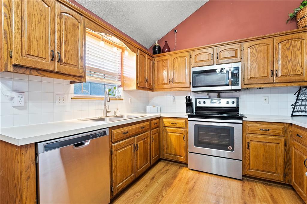 Welcome home to this charming split-entry gem located within the highly sought-after Liberty North High School boundaries—a rare find at this price! If you love spending time outdoors, this home is made for you. Enjoy crisp fall mornings or relaxing evenings on the spacious upper deck—newly built in 2022—with stairs leading to a large lower patio, offering endless options for entertaining or unwinding. The large, level backyard features a new privacy fence (2022), perfect for pets or play. Step inside to find vaulted ceilings that create an open, airy feel in both the living room and kitchen. The main level includes three comfortable bedrooms and a full bath, with a generously sized master suite that easily fits a king-size bed. The finished lower level adds valuable living space with a convenient half bath and a walkout to the double patio—ideal for indoor-outdoor living. You’ll appreciate the newer exterior paint, storm doors, and a roof that’s only one year old, ensuring peace of mind for years to come. With excellent highway access and a welcoming neighborhood, this home perfectly blends comfort, convenience, and charm!