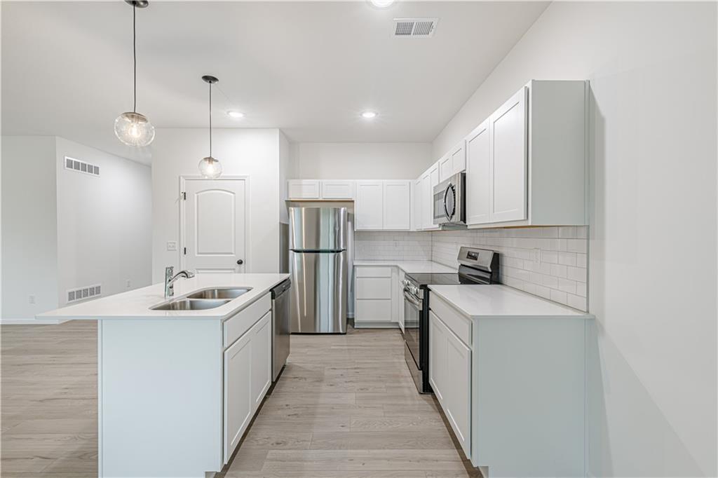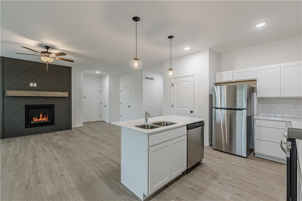 Welcome home to modern comfort and thoughtful design in this newly built home. Sitting gracefully on a corner lot within a cul-de-sac and accented with charming stone details, this 3-bedroom, 2-bath home feels bright, open, and inviting from the moment you step inside. Luxury vinyl plank flooring extends throughout the main living spaces, leading you into a spacious open-concept layout that’s perfect for everyday living and easy entertaining. The kitchen, dining, and living areas flow seamlessly together, creating the ideal spot to gather with friends, share a meal, or catch the next Chiefs game by the cozy fireplace. The kitchen itself shines with quartz countertops, crisp white cabinetry, a generous center island, and a walk-in pantry that makes staying organized effortless. Set apart at the rear of the home, the primary suite serves as your personal haven, featuring a roomy layout, walk-in closet, and a sleek en-suite bath with a walk-in shower. The two additional bedrooms at the front of the home offer endless possibilities — from a cozy guest retreat to a quiet home office or flex space for whatever your days demand. You’ll also appreciate the spacious laundry room, conveniently located near the bedrooms yet tucked out of sight, keeping household chores practical without disrupting the home’s flow. A 3-car garage provides plenty of storage, while the exterior’s curb appeal and quality craftsmanship make this home stand out. Come see how this beautifully designed home blends comfort, style, and functionality — it just might be exactly what you’ve been looking for. *Taxes in MLS was based off raw land. Taxes will be higher, but we don't know what that number is yet.