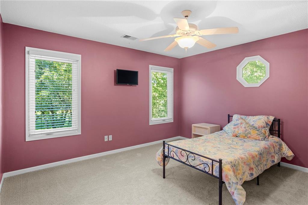 Spacious two story home at the end of a cul-de-sac in sought after Pavilions subdivision! Situated on almost a half acre lot with the back deck overlooking mature trees and landscaping, this impressive home features 6 bedrooms all with large walk-in closets, an open kitchen flowing into the hearth and dining areas, a separate versatile family room and a home office with built-in cabinetry. The large primary suite boasts a recently renovated bathroom by Jericho Home Improvements and a relaxing sitting area with views of the lush, mature surroundings. The finished walk-out basement expands your living space with with an additional bedroom, full bath and multiple flexible rooms designed for family enjoyment. Enjoy year-round comfort with a geothermal climate control system and EnergyPro windows throughout, while all-new carpeting and fresh paint enhance the home's move-in ready appeal. With its thoughtful updates, flexible living spaces, and energy-saving features, this home offers exceptional value.