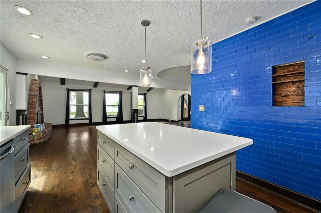 Better than new Construction! Lake views! Character! True ranch 3/2 on main level. 4th nonconforming bathroom w/ private en suite in lower level. Well lit, tall floor to ceiling windows w/ views of the lake from kitchen, dining, and living room! Kitchen quartz island. Big fenced level backyard for all kinds of activities. HVAC zoned! Kitchen walks out to adorable courtyard. Primary bedroom walks out to backyard. All right next to the private lake you have access to.