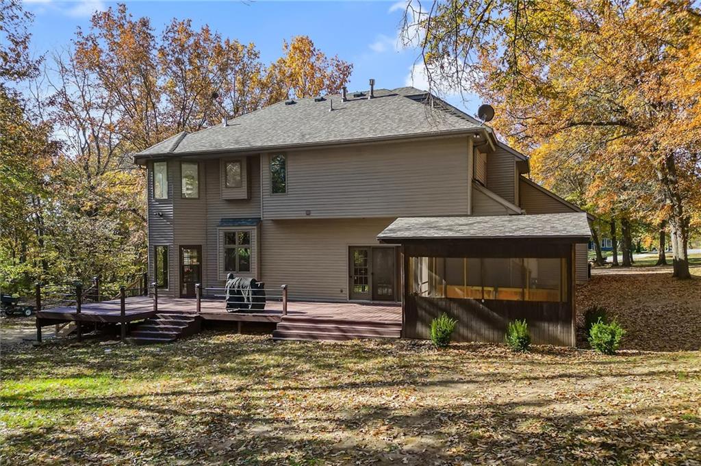 Welcome to this Picture-Perfect home, nestled in a park like setting on 3.35 acres. This 4-bedroom 4bath home is located in the highly sought-after Kearney School District. The extra-large kitchen is a chefs dream with a gas/electric range and two ovens. Above and under cabinet lighting shows off the beautiful cabinetry. Enjoy hosting family and friends in the formal dining room with a pass through from the kitchen. A cozy fireplace calls the living room home. The oversized master suite includes a large walk-in closet, double sinks, shower and a jacuzzi tub. Bring the family to stay in the two additional bedroom suites each with a full bath and walk in closet. This home boasts with an abundance of natural lighting. Entertaining is made easy in one or both of the screened in porches or on the extra-large deck. An oversized double car garage in the front, a full concrete basement with workshop and third garage leads to a second driveway. Storage was a priority when designing this custom-built home with a unique floor plan. New roof, new gutter and new paint. This home won't last long.