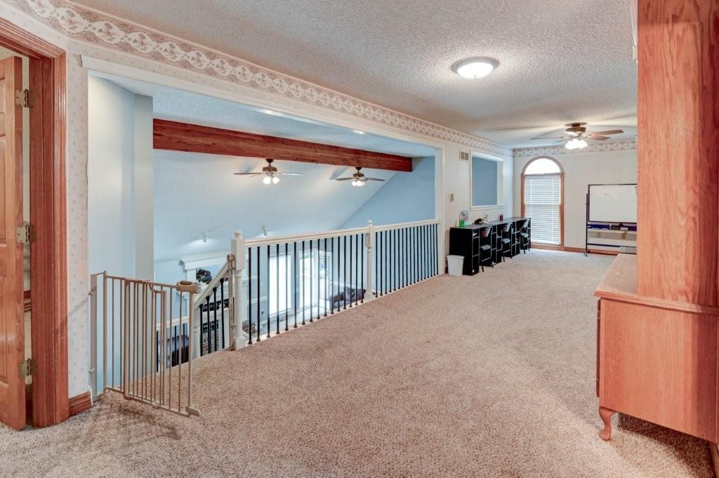 Lots of space for the money in this well-cared-for custom home. Main-level primary bedroom. Open and vaulted great room with space for formal dining near kitchen. Large eat-in kitchen with access to deck. Low-maintenance vinyl siding, covered front porch, and deck off great room. Finished walkout lower level includes an office, bar area, and a huge recreation room. Upstairs features a loft living area and two spacious bedrooms, each with large walk-in closets. Unfinished room in basement offers great storage or workshop potential. Convenient location near schools, shopping, I-70, and medical facilities.