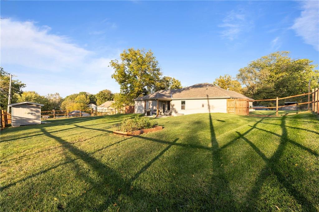 Better Than New! Only 4 Years Young! Welcome to this beautifully maintained 3-bedroom, 2-bath ranch-style home that feels brand new, complete with all the thoughtful upgrades already done for you! Built in 2021, this smoke-free, one-owner home has been lovingly cared for and designed with today’s lifestyle in mind. Step inside to discover an inviting open-concept layout featuring a spacious living area and a modern kitchen equipped with sleek finishes, ample cabinet space, and a generous island—perfect for entertaining or everyday living. The owner’s suite offers a private ensuite bath and walk-in closet, while two additional bedrooms provide flexibility for guests, a home office, or hobbies. Outside, you’ll find a partially fenced yard with a sprinkler system and a third concrete parking pad—perfect for extra vehicles, a trailer, or guests. A 10 x 16 storage shed with a ramp provides convenient space for lawn equipment, bikes, or hobby gear. Enjoy outdoor living with plenty of room for gatherings, gardening, or relaxing evenings under the stars. Every detail has been thoughtfully considered, making this home truly move-in ready from day one. Ideally located just minutes from downtown Kansas City, North Kansas City Hospital, parks, and shopping—with easy highway access for effortless commuting. Don’t miss your chance to own a nearly new home in a quiet and friendly neighborhood. Schedule your showing today to see all that this home has to offer.
