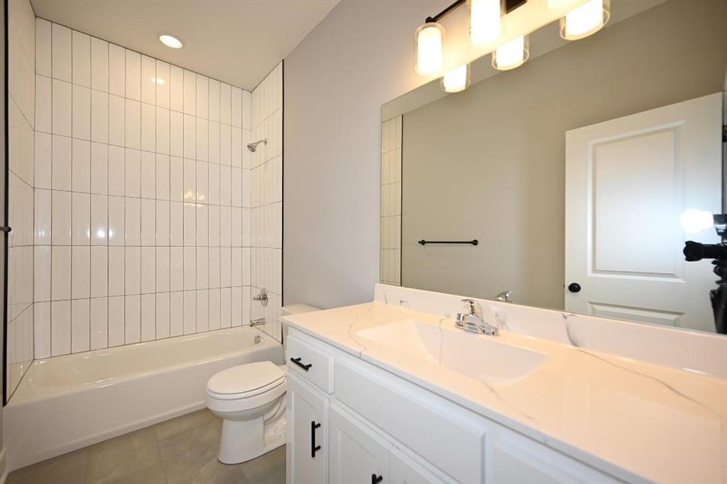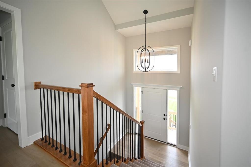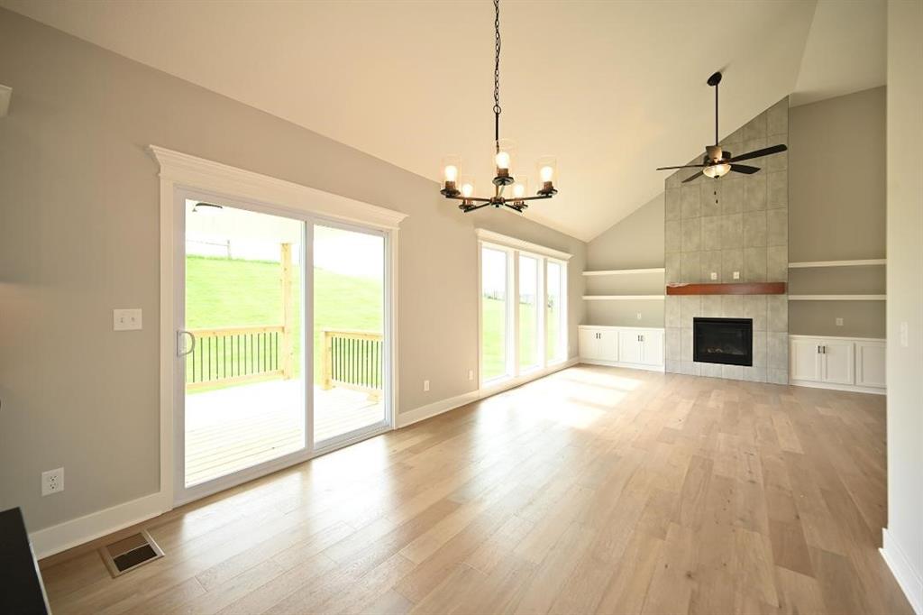 This beautiful home features a range of custom amenities that enhance both functionality and style. The heart of the home features a stunning kitchen with custom white cabinets, a spacious pantry, and an inviting island topped with gorgeous granite. Modern stainless steel appliances add both style and utility, while the covered deck, complete with a ceiling fan, provides a perfect outdoor stocked lake for fishing. The great room boasts LVP flooring throughout, complemented by a beautiful stone fireplace creating a cozy and elegant focal point. The laundry room is efficiently designed with tile flooring and custom cabinetry to keep things organized. The home includes two bedrooms with carpet, each featuring tray ceilings and ceiling fans for added comfort. The guest bathroom is stylishly designed with tile flooring and a tub, ensuring convenience for visitors. The master suite is a true retreat, featuring plush carpet and a spacious walk-in closet. The master bathroom boasts custom cabinets, a luxurious jetted tub, double vanity sinks with sleek black faucets, and a huge tile shower for a spa-like experience. The lower level includes an additional bedroom with carpet and a ceiling fan, along with a full bathroom featuring tile floors and a tub. The home is equipped with ample recessed (can) lighting throughout, showcasing its thoughtful design. Additional highlights include an oversized three-car garage and eye-catching stone accents on the front of the home, making it not only functional but also visually appealing. This property combines elegance, comfort, and practicality, making it a fantastic place to call home! PHOTOS ARE SIMULATED MORE TO COME, LAKE IS STOCKED.