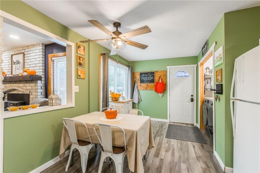 Charming 3-Bedroom Home with Modern Updates and Spacious Yard Welcome to this inviting 3-bedroom, 1.5-bath home that perfectly blends warmth, comfort, and modern updates. Step inside to a bright and cozy living room featuring a wood-burning fireplace with a brick surround—the perfect spot to unwind after a long day. The updated kitchen offers plenty of charm with natural wood cabinetry, updated appliances, and a cheerful, open layout with eat-in dining. The adjacent laundry area adds convenience and functionality to your daily routine. Enjoy the beautifully refreshed bathroom and comfortable bedrooms that make this home move-in ready. Outside, the property offers a detached garage/shop and a spacious backyard, ideal for outdoor gatherings, gardening, or simply relaxing. With thoughtful updates throughout and a welcoming atmosphere, this home is ready for you to make it your own.