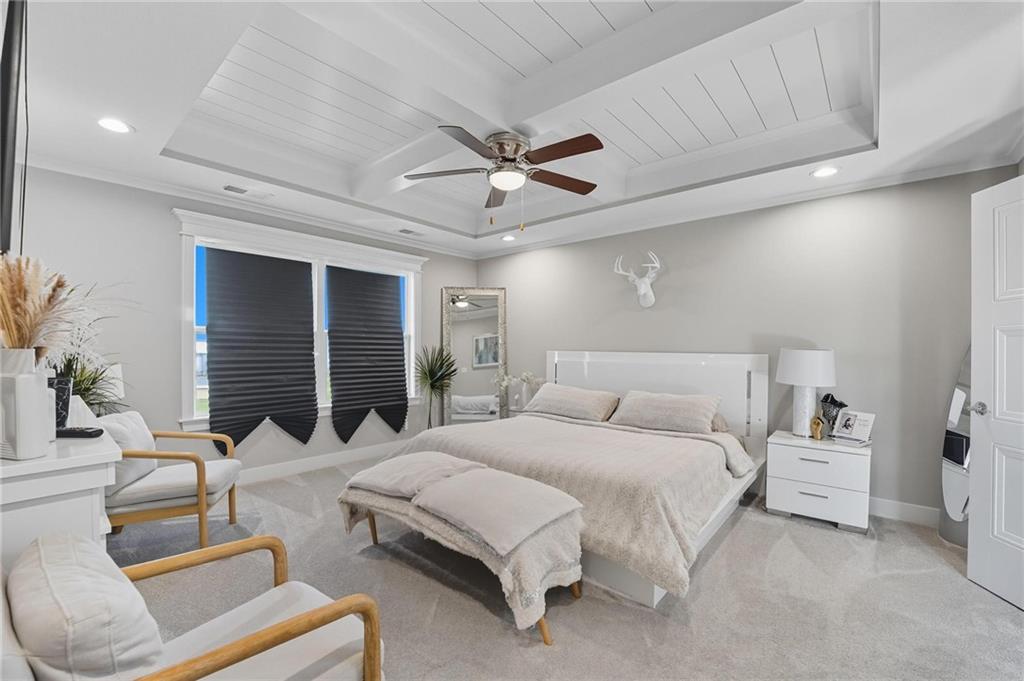 Don't miss this well thought-out, open and modern two story home. Upgraded finishes galore! The light and bright main level welcomes you with a sleek corner fireplace, floor to ceiling kitchen cabinets, gas range with hood, large island, black granite countertops and an oversized, walk-in pantry. Welcoming covered patio is easily accessed from the dining area. Full sized office also located on the main level. Enjoy the oversized drop zone off the garage, which includes a built-in desk and coat closet. Upstairs has 4 bedrooms and 3 full bathrooms. Spacious primary bedroom with full sized laundry room that connects to the huge walk-in closet. En suite bath with double vanity, walk-in shower and soaking tub. Large unfinished basement is just waiting for your finishing touches. All of this located on large corner lot in a beautiful neighborhood. Close to highways, schools and shopping. Come check it out!