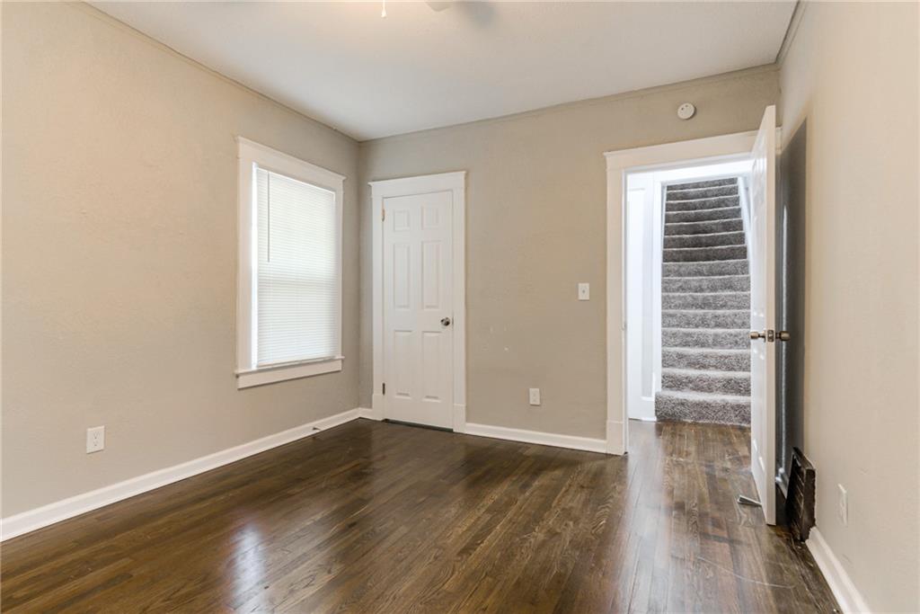 Welcome to Parkwood! This charming 1.5-story gem blends style and functionality with ease. Step onto the inviting stone front porch — the perfect spot to enjoy peaceful mornings and relaxing evenings. Inside, you'll find a spacious living room featuring gleaming hardwood floors, abundant natural light, and a cozy fireplace that anchors the space. The kitchen boasts granite countertops, painted cabinetry, and convenient access to the main-level laundry. Upstairs, discover two additional carpeted bedrooms, including one with a versatile sitting area and its own half bath — ideal for guests, a home office, or a quiet retreat. Most of the updates are less than 2 years old. Come quick.