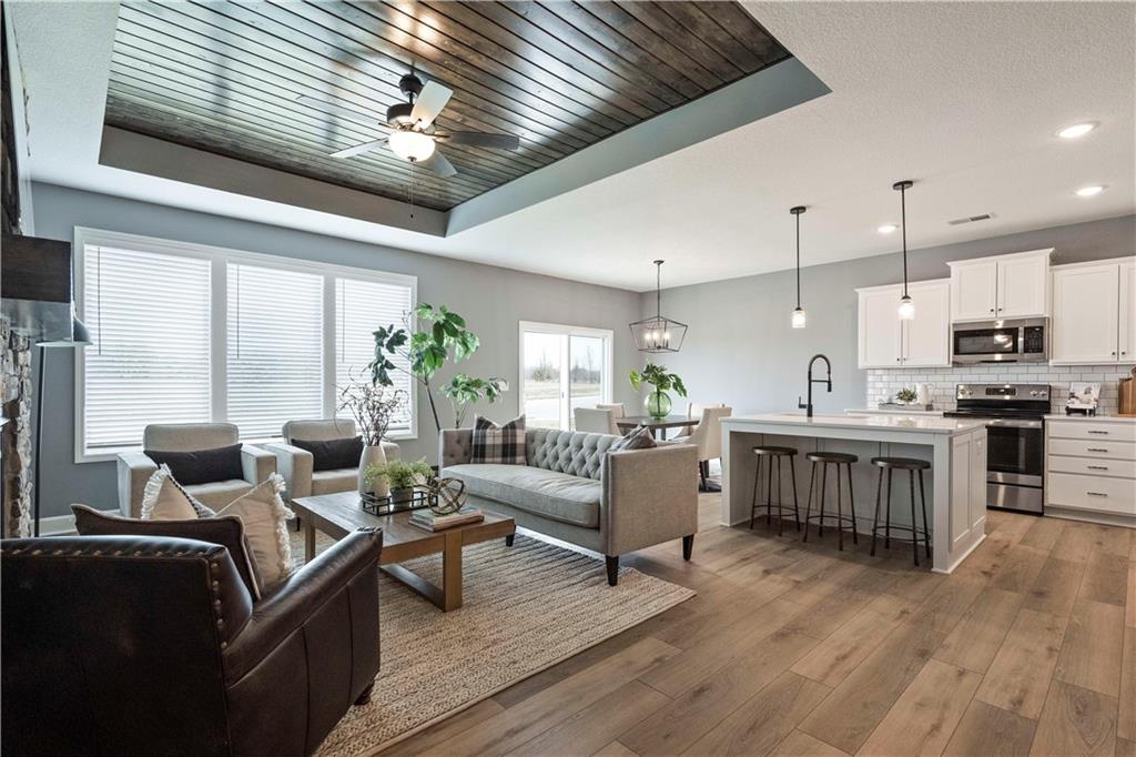 Ashlar Homes presents a fresh, single level ranch in The Woodlands at Chapman Farms, a thoughtfully designed 3 bedroom, 2 bathroom home on a low maintenance slab foundation for true one level living. From the moment you step inside, the plan feels open, bright, and intuitive. The kitchen is the heart of the home, anchored by a nice sized island for meal prep and casual seating, plus a walk in pantry to keep counters clear and weeknights organized. Seamless flow to the dining and living areas makes everyday life easy. Host the game, linger over weekend breakfasts, or enjoy a quiet night in without giving up space or comfort. The private primary suite offers a calm retreat, while two additional bedrooms flex for guests, a home office, crafts, or a fitness nook. Thoughtful storage solutions, energy efficient systems, and durable finishes deliver the confidence buyers love in new construction. Wide hallways and minimal transitions emphasize the convenience of no stairs and no basement. Everything you need is right where you want it. Location perks: Set within Woodlands at Chapman Farms in Blue Springs, you are minutes from everyday conveniences at Adams Dairy Landing for groceries, dining, and services. Outdoor escapes abound at Fleming Park, Blue Springs Lake, and Lake Jacomo with trails, paddling, fishing, and picnic spots. Nearby neighborhood walking paths and play areas add to the daily ease. Quick access to primary routes streamlines commutes across the Kansas City metro, while local schools, parks, and recreation keep weekends full without going far from home. If you are seeking a right sized, low maintenance home that balances comfort, function, and a truly convenient setting, this Ashlar Homes ranch in The Woodlands at Chapman Farms checks the boxes. This home should be complete Early Spring and you can still make color selections!