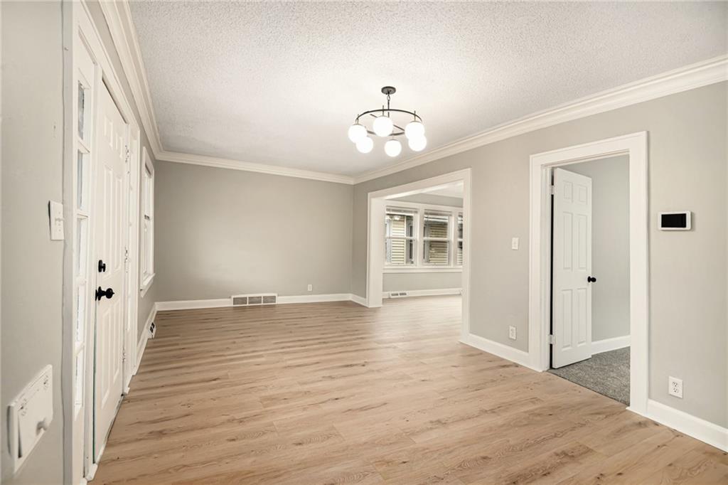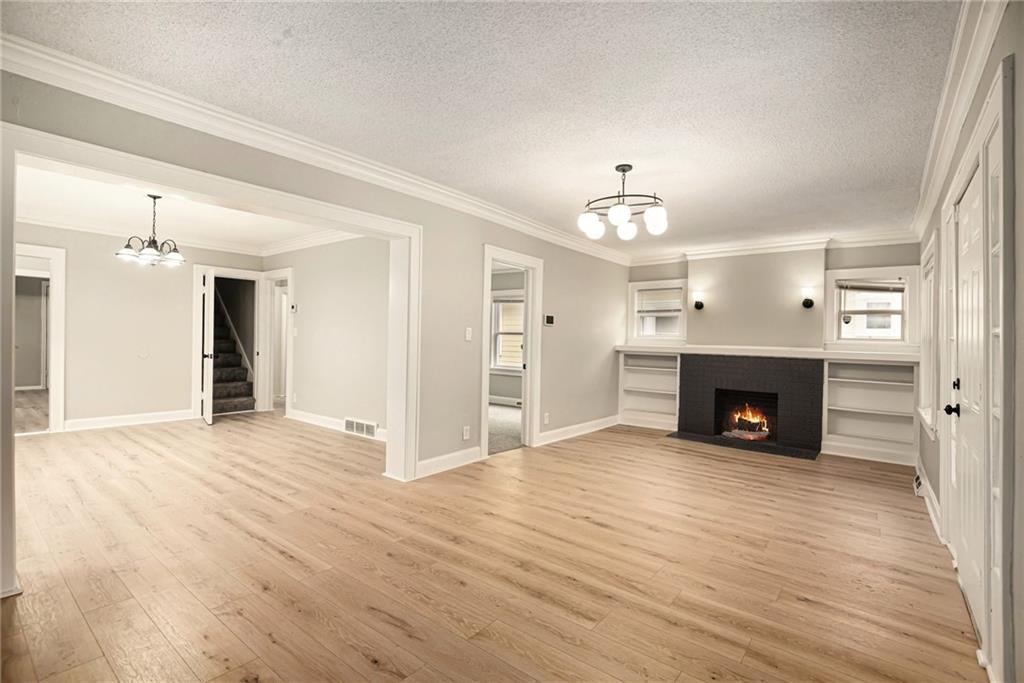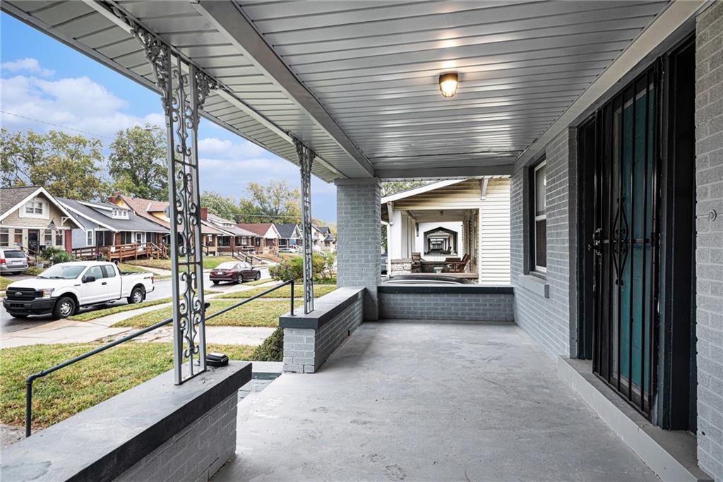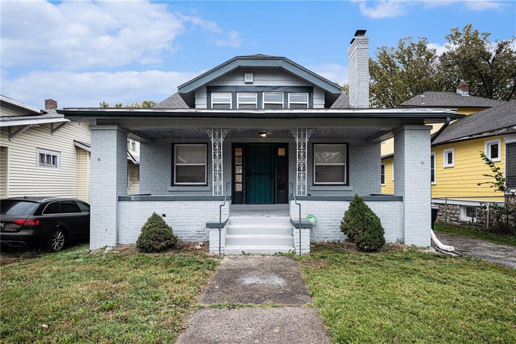 Super cute and full of character, this beautifully updated three bedroom, two bath bungalow offers the perfect blend of charm and modern style. Enjoy a welcoming covered front porch and a detached one car garage. Inside, you'll find stylish modern flooring throughout, a spacious family room featuring a cozy fireplace and built in shelving, and updated bathrooms with detailed tile work and contemporary vanities. The kitchen stands out with sleek countertops, accented cabinetry, and modern finishes. Abundant natural light pours through the many windows, enhancing the home's warm and inviting feel. The flat, level backyard provides plenty of space to relax or entertain. Conveniently located less than 15 minutes from the Country Club Plaza and downtown, this home is ideal for first time buyers or investors!