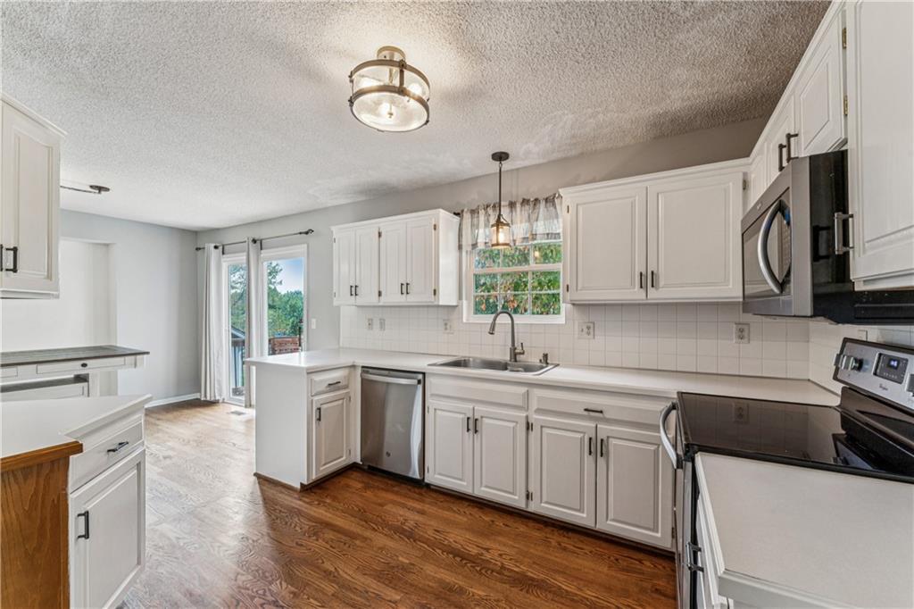 Move-in ready 3-bedroom home with no HOA on a treed, fenced lot in a quiet Olathe neighborhood! Major updates include new HVAC (2024), water heater (<1 yr), new carpet throughout (including stairs, closets, bedrooms, and living room), plus new flooring in the upstairs hallway, gym, and laundry areas. Fresh interior paint, new light fixtures in kitchen and office, and braced deck. The kitchen features Corian counters and freshly painted cabinetry, while the dining area opens to the deck for easy entertaining. The living room offers a wood-burning fireplace and hardwood entry. Upstairs, the primary suite features a ceiling fan, private bath with dual vanities and walk-in shower, and a new barn door on the closet. Bedrooms 2 & 3 include new carpet, built-ins, and ceiling fans. Lower level includes an office with LVP, half bath, and laundry. Unfinished sub-basement with shelving provides ample storage. New soundless garage door system, newer dishwasher, and improved landscaping out front. Exterior was repainted and wood rot replaced within the last 5 years. Fence replaced on three sides (2023). Other things to love: all of the nearby parks & trails, including the close proximity to Prairie Center Park, strong public schools, commuter friendly with fast I-35 access.