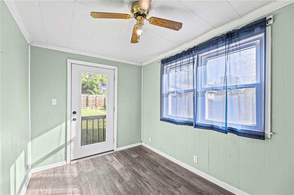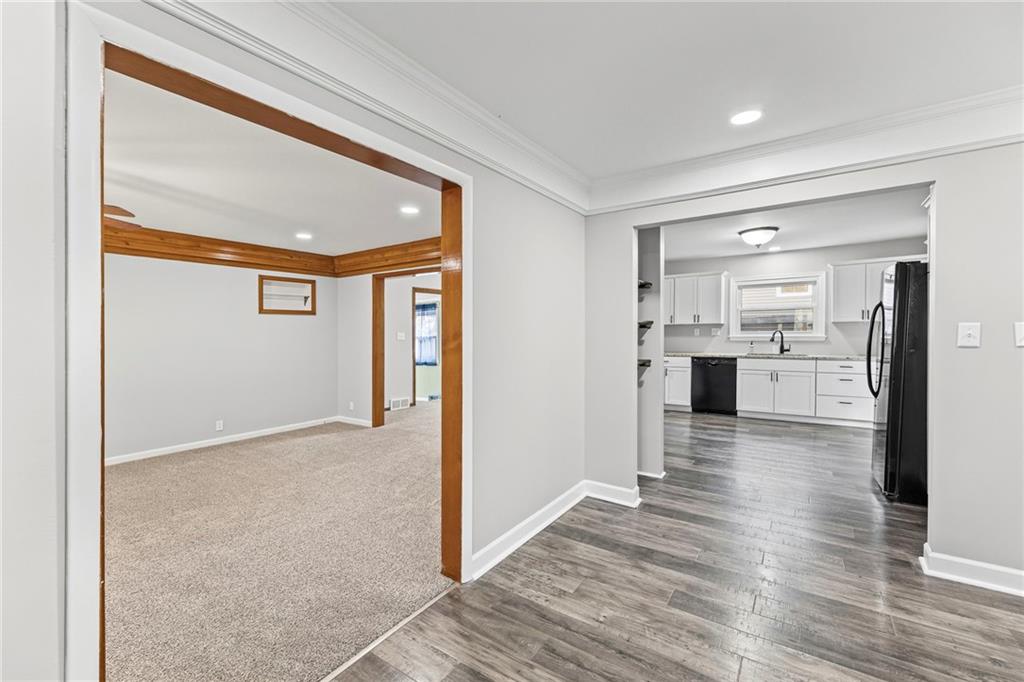 Experience the charm of small town living in this awesome 3 bedroom home situated on a corner lot in historic Paola, Kansas. This well-maintained property features a newer roof and windows and boasts fresh interior and exterior paint. Inside, you'll find a large family room with a cozy woodburning fireplace and beautiful crown molding that extends into the entryway. The open concept kitchen is a dream, showcasing custom cabinets, granite countertops, a built-in pantry, and supplemental shelving, flowing seamlessly into the dining room - perfect for entertaining. A versatile bonus room between the dining area and the garage is ideal for an office or mud room. The home offers two spacious bedrooms upstairs and a huge basement bedroom featuring a new egress window and luxury vinyl plank flooring. Outside, enjoy a great backyard with a new 6 foot privacy fence and a shed with a metal roof. Located within walking distance of the Paola Square's shops, dining, park, and gazebo, and close to Wallace Park. This home is a gem that won't last long!