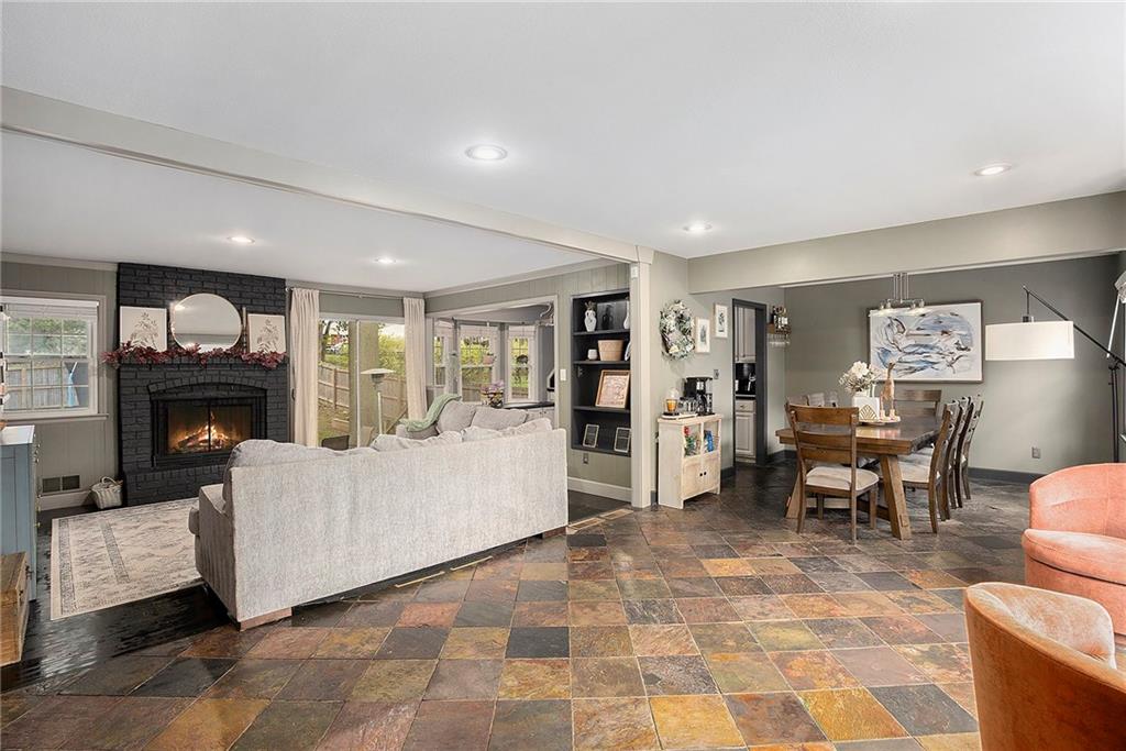 Welcome to this beautifully maintained raised ranch in the highly desirable Woodson Estates neighborhood! This charming 3-bedroom, 2.5-bath home blends comfort, character, and thoughtful updates throughout. Step inside to find vaulted ceilings, gleaming hardwood floors, and large windows that fill the home with natural light. The inviting family room features a cozy brick fireplace and flows seamlessly to the dining area and spacious kitchen—perfect for both everyday living and entertaining. The primary suite offers dual closets and a private full bath, while two additional bedrooms provide plenty of space for family, guests, or a home office. The finished lower level adds a large second living area with another fireplace, a half bath, laundry room, and abundant storage. Enjoy quiet evenings or morning coffee on the back patio overlooking the fenced yard. A two-car garage, well-kept exterior, and pride of ownership make this home truly move-in ready. Conveniently located near parks, shopping, restaurants, and quick highway access — this home offers the perfect balance of suburban comfort and city convenience. Don’t miss your chance to call this one home — schedule your private tour today!