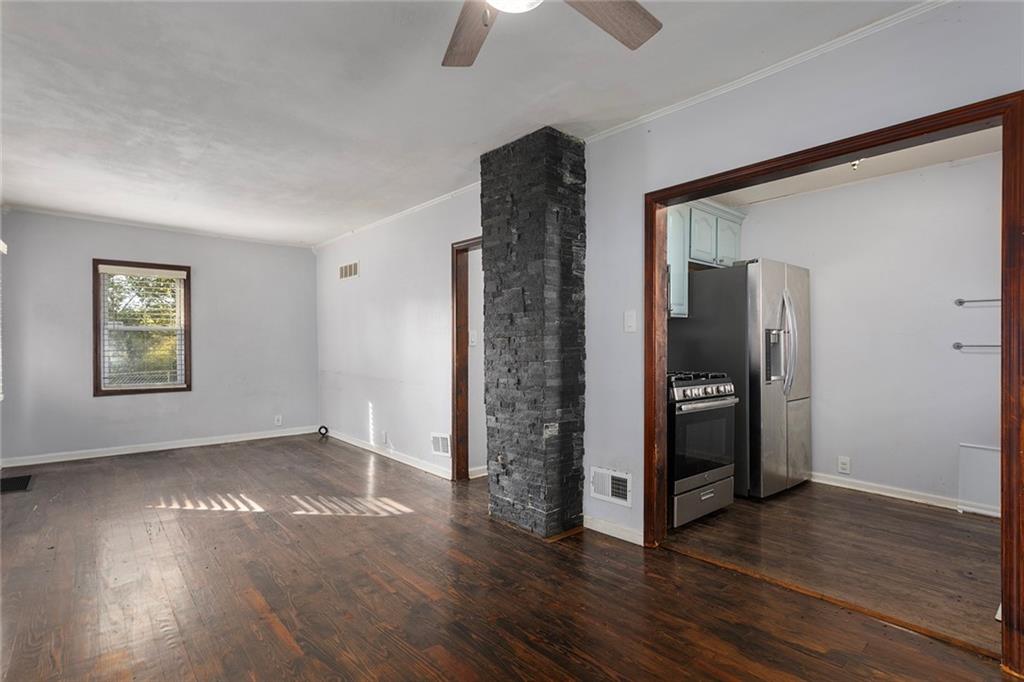 TRUE RANCH SITTING ON AN OVERSIZED TREED LOT. CLOSE TO MAJOR HIGHWAYS. WOULD MAKE A GREAT STARTER HOME. JUST NEEDS A LITTLE TLC. SPACIOUS 1 CAR DETACHED GARAGE WITH ELECTICITY. 2 OUTDOOR LIVING SPACES. ALL ORIGINAL HARDWOOD FLOORS AND NEWER STAINLESS APPLIANCES INCLUDING WASHER AND DRYER. NEWER KITCHEN AND BATH UPDATES WITHIN THE PAST 6 YEARS. RADON SYSTEM INSTALLED. EXTERIOR ENTRANCE TO UNFINISHED BASEMENT FOR ADDED STORAGE. MAIN LEVEL LAUNDRY AREA. WHY RENT WHEN YOU CAN OWN THIS DARLING HOME WITH PLENTY OF SPACE TO ADD ON. HOME BEING SOLD IN AS IS CONDITION BUT MAIN COMPONENTS ARE ALL IN GOOD SHAPE. COVERED PATIO AND COVERED FRONT PORCH AND VINYL SIDING EXTERIOR.