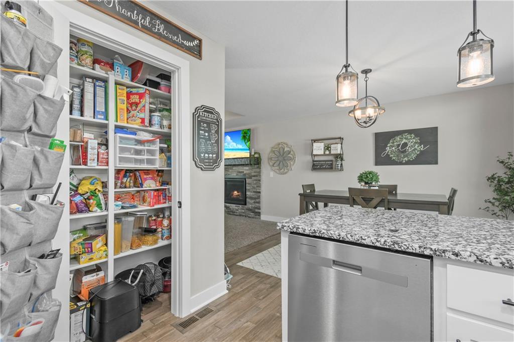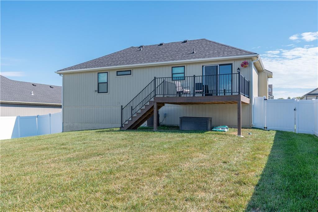 Welcome home to this nearly new, beautiful split entry home in Grain Valley. Built in 2022, this home offers 4 bedrooms, 3 full bathrooms and 2 car garage. Spacious living room with a stunning stone accented fireplace leads you into a nice dining area and kitchen with ample cabinet space, granite counters and pantry. 3 bedrooms along with laundry are on the main level! Primary suite offers great space along with a private bath with a large vanity, tile shower and oversized tub. Other two bedrooms are great in size and near the 2nd bathroom. Downstairs you'll find the large 4th bedroom, rec space & 3rd bath. The backyard is beautiful and flat with a great sized deck and fully fenced! The 2 car garage is deep, great for vehicles, tools, toys & storage. Great neighborhood with no HOA. There is truly nothing to do here but move in!