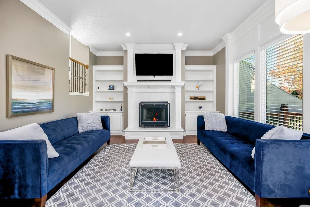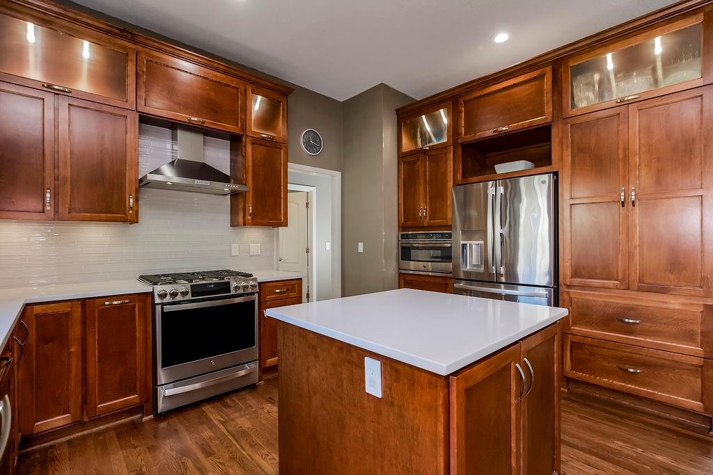 This spectacular 2 story, 4 bedroom 3 bath home is located in one of Blue Valley’s most sought-after neighborhoods. The main level welcomes you with an open floor plan and a versatile office or flex room just off the entry. Sunlight fills the spacious living area making this home perfect for entertaining or everyday living. The living room features a cozy fireplace a wall of windows and freshly finished hardwood floors. The chef’s kitchen is a true delight offering an abundance of custom cabinetry, quartz countertops, a gas range, stainless appliances and a functional layout that opens to the living area and beautiful backyard views. Upstairs you’ll find 4 generously sized bedrooms including a spacious primary suite with a sitting area. The luxurious in suite bath features a jetted tub, walk-in shower, double vanity and a large walk-in closet. The finished lower level offers the perfect space for a game room, home theater, or additional entertainment area plus plenty of storage. Prime location and just a short walk to award winning Blue Valley schools. Close to highways, shopping, restaurants and local sports fields. This move in home truly has it all.