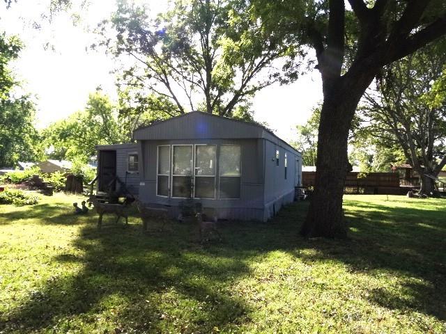 Singlewide Manufactured 2 Bedrooms, 1 Bath, a 12x16 (192 sq. ft.) room addition with 2 doors and windows was added to the 900 sq. ft. home. Carport in the yard, root cellar or tornado shelter appears to be in good condition is a bonus. Home has been well taken care of with a kitchen island, bow window with almost new mini blinds, stove and refrigerator are in clean and in good condition. Pantry also. The bathroom in the hall has been remodeled with a fiberglass walk-in shower with many grab bars. Washer and dryer are in the hall with a shelf above. 2023 HVAC System. Propane tank that runs kitchen range and the furnace is owned by the property. Electric Water heater in the master bedroom closet was installed in 2022. 100 amp Breaker box in Master Bedroom. Outside was painted in 2025, Most of inside painted in 2023. Roof in 1998. Mature Trees, Garden Spot, Lot is 130x140.