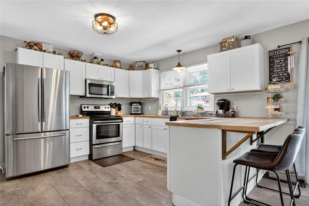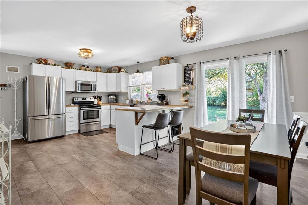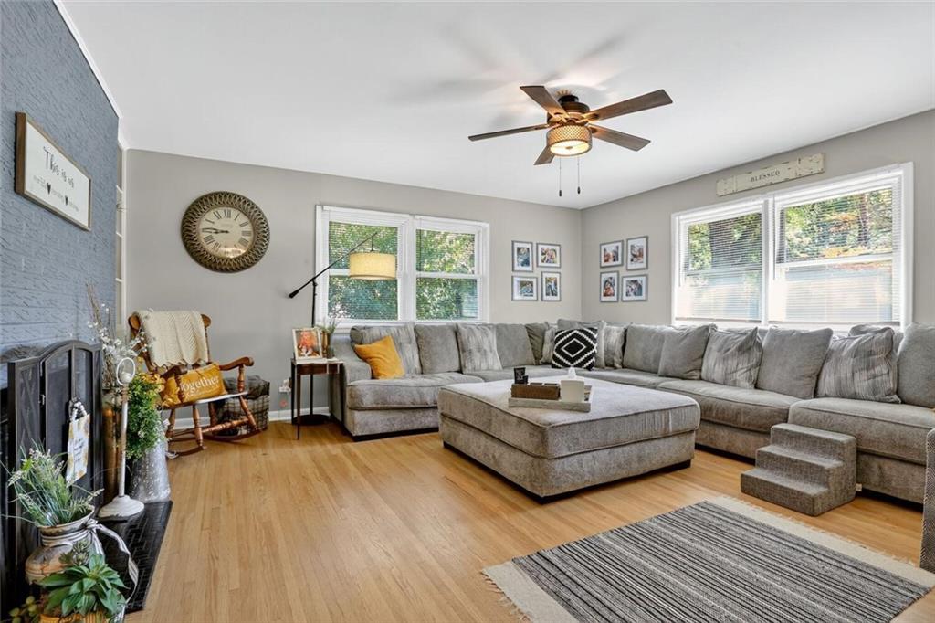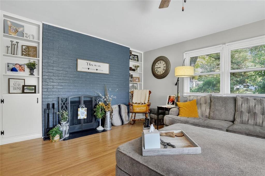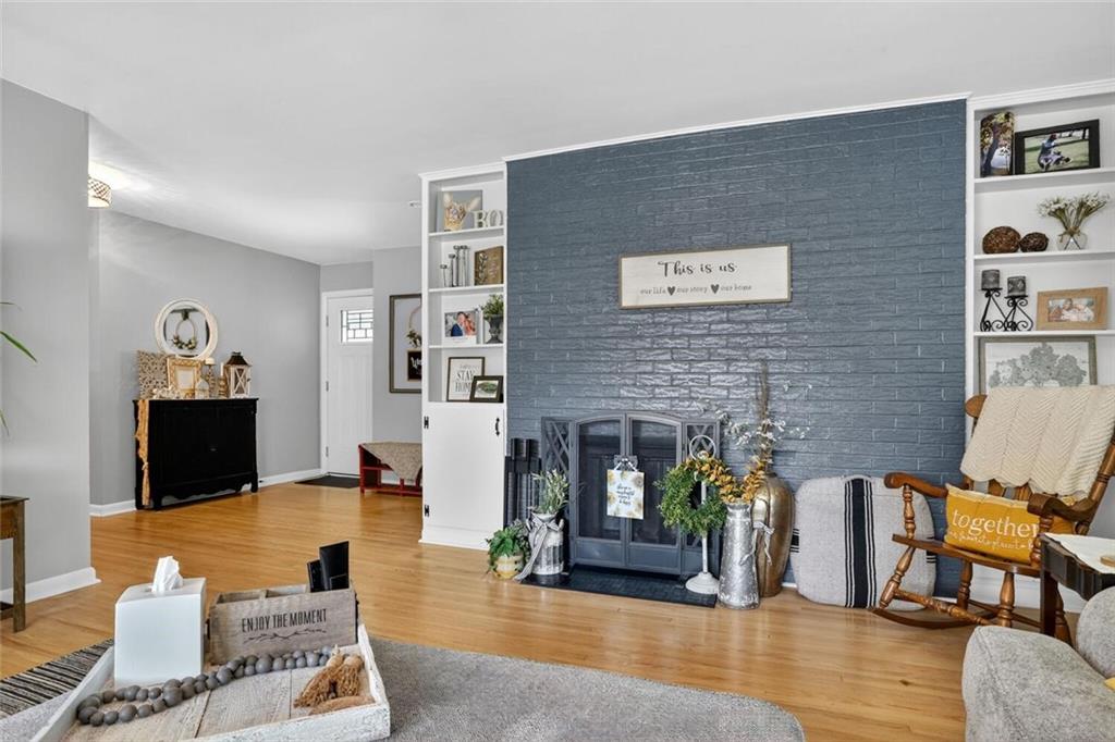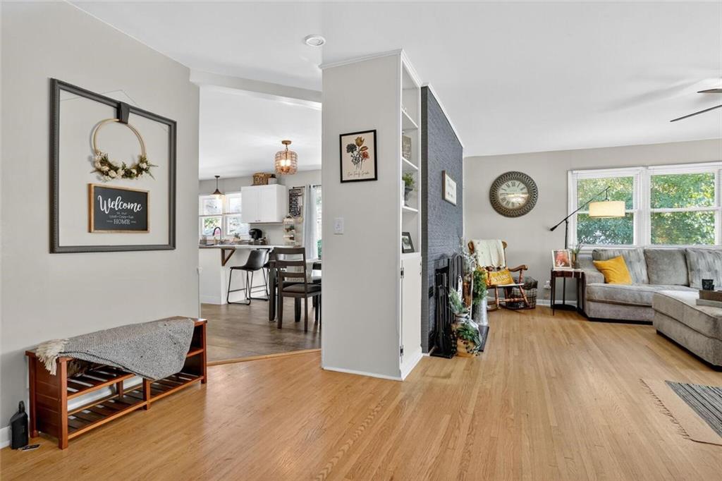 This 3 Bedroom, 1.5 Bathroom home in the Southwood Heights subdivision is charming, beautifully maintained, and truly move-in ready. This home is full of style and charm! Built in 1959 and offering approximately 1,360 sq. ft. on the main level, this home shows pride of ownership throughout and sits in a well-manicured neighborhood w/easy highway access to surrounding communities for simple commuting. A covered Front Porch w/ Craftsman-style leaded glass door welcomes you inside to hardwood floors that flow throughout the main living areas. The spacious Great Room features a fireplace w/painted brick, built-in bookshelves, & large windows that fill the home w/natural light. The remodeled Kitchen includes new painted shaker cabinets, updated countertops, a chevron butcher block workspace, & stainless steel farmhouse sink framed by backyard views. Stainless steel appliances, an eat-up bar w/storage, & open Dining Area w/ a fireplace make this space perfect for both everyday living & entertaining. Sliding glass doors lead to the backyard patio for easy indoor-outdoor enjoyment. A convenient half Bathroom is located just off the Kitchen. Three main-level Bedrooms each feature hardwood flooring, generous closet space, & large windows. The full Bathroom includes beadboard trim, a vanity w/ medicine cabinet mirror, & a shower-over-tub design & built-in shelving. The future finish lower level provides laundry, storage, & future finish potential w/daylight windows & room to expand. The front-entry Garage includes a double door, insulated, opener & a walkout door to access to the backyard. Exterior highlights include lapboard wood siding, a freshly paved driveway w/ side parking pad (perfect for a boat, camper or hobby vehicle!) & double gate, flagstone patio, mature trees, & a large, level fenced yard. This home is spotless, thoughtfully updated, & move-in ready, a wonderful combination of comfort, convenience, & classic style in a peaceful, well-kept neighborhood.