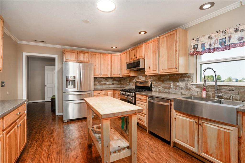 Enjoy the freedom to personalize your new home—seller is offering a $5000 painting allowance to help you create the perfect finishing touch! Escape to the country with this beautiful 4-bedroom, 3-bath home perfectly set on 10 scenic acres. Thoughtfully designed for comfort and versatility, this property offers room to live, work, and play. Step inside to an inviting kitchen featuring custom cabinetry, a huge walk-in pantry, and stainless steel appliances—ideal for home cooks and entertainers alike. The open layout flows easily to the dining and living areas, creating a warm, welcoming atmosphere. The spacious primary suite provides a relaxing retreat, while the bonus room offers endless potential for a home business, office, or craft space. Downstairs, enjoy a movie room for family nights and an exercise room to stay active year-round. Outside, take in breathtaking sunsets and the peaceful sounds of nature. A large workshop, barn, and greenhouse make this the perfect property for hobbyists or small-scale farming. Mature apple trees add a touch of charm and country appeal, and wildlife is often seen roaming nearby. Whether you’re seeking a private retreat or a place to build your rural dreams, this property combines beauty, functionality, and serenity—all within easy reach of town amenities. This property is located a couple miles from a pumpkin patch and rail trails.