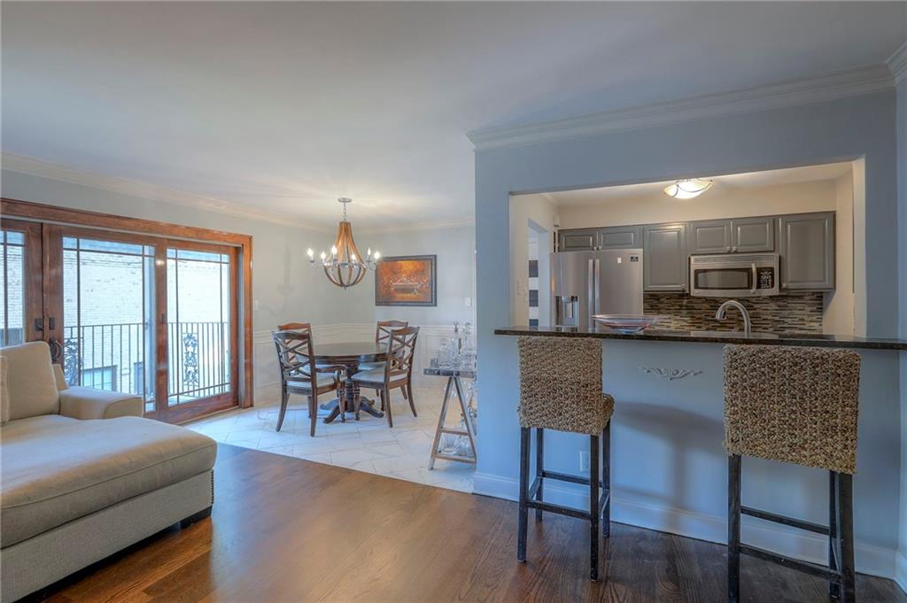 Enjoy maintenance-provided living in this beautifully updated condo just minutes from everything Prairie Village has to offer. Inside, you will find newly refinished hardwood floors in the living area, tile in the kitchen, dining room and bathroom, and new carpet in the bedrooms. The stylish kitchen features granite countertops, a tile backsplash, stainless steel appliances, and a breakfast bar that opens to the living room. Relax in the updated bath with a jetted tub, or unwind on the private balcony overlooking the pool. A high-end sliding glass door and large windows fill the home with natural light. Fresh paint throughout plus newer refrigerator, microwave, stove, and dishwasher- all included. Convenient in-unit washer and dryer too! Only six steps up from ground level and complete with extra storage space provided in a neighboring building. Pool view, maintenance-provided convenience, and a sought-after Prairie Village address make this condo a standout choice! Room sizes, square footage, HOA dues and taxes should be verified by the buyer.