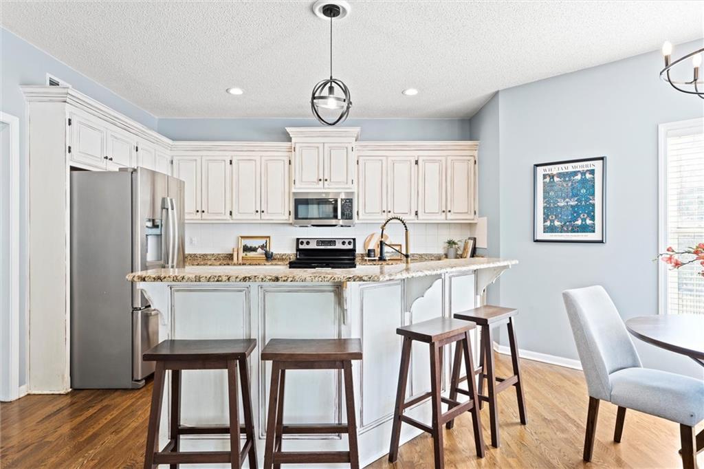 Welcome to 14708 Walmer Street! This beautifully cared-for home is nestled in Regency by the Lake, located in the heart of Overland Park. Thoughtful updates, generous living spaces, and a private backyard retreat make this home a true stand out. Step inside to find a light-filled floor plan with hardwood floors and elegant architectural details. The formal dining room’s richly colored walls and wainscoting create a striking first impression, while the open kitchen makes everyday living feel easy and connected. A main-level half bath and inviting living spaces offer both function and flow for gatherings large and small. Upstairs, the spacious primary suite features a tray ceiling and abundant natural light, along with a large en suite bath and walk-in closet. Three additional bedrooms share a full hall bath, providing comfortable accommodations and flexible space. All bedrooms just had new carpet installed as well with fresh paint in two of the rooms. The finished lower level extends the living area with a rec room, full bath, and bonus room. The bonus space offers versatile options for a home gym, creative studio, guest space and more. The full bath is connected to both the rec room & the bonus room making it a perfect space for a guest suite. All this space and still plenty of storage in the unfinished storage room. The 2 car garage features extra space to allow for storage of lawn equipment, bikes, etc. Step outside to your private patio surrounded by lush landscaping creating a peaceful setting for morning coffee or evening gatherings. Plus a sprinkler system to keep the lawn green all summer! Located just steps from Lakewood Elementary and Lakewood Middle, both within the Blue Valley School District, and minutes from shopping, dining, and entertainment at BluHawk and Prairie Fire. This home offers a desirable blend of comfort and convenience in a prime Overland Park location. HOA even includes walking trails and a neighborhood pool!