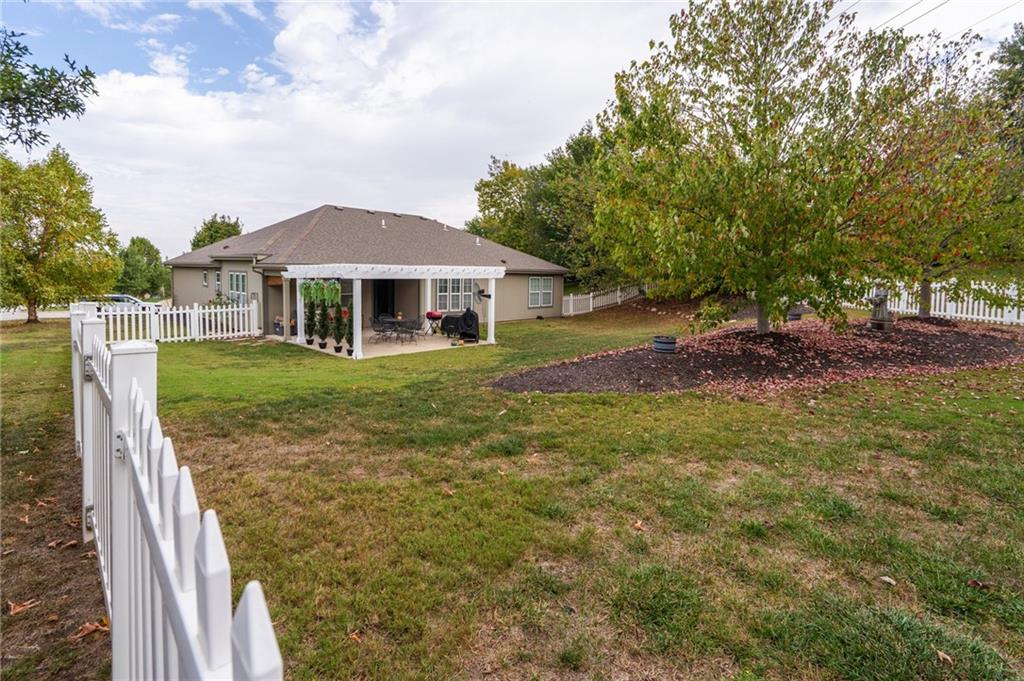 1 level living surrounded by almost 1/2 acre with most of it fenced in. Backyard extends well beyond the fence. Primary bedroom suite on the front and two bedrooms on the back with an open kitchen, dining area, living room in the middle. On a small cul-de-sac this one is well cared for and ready for a new owner.