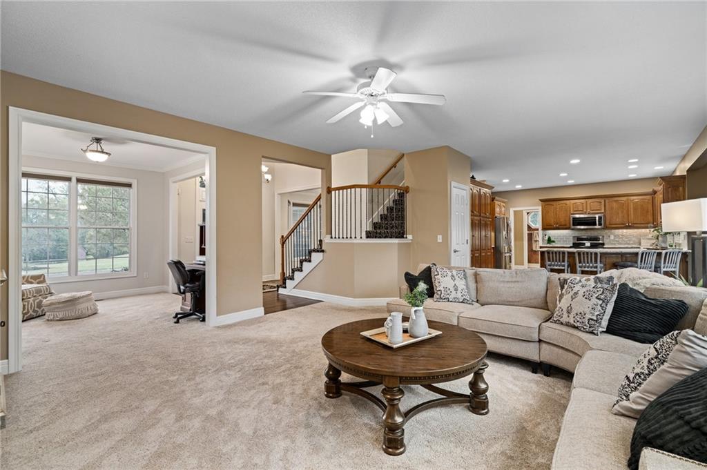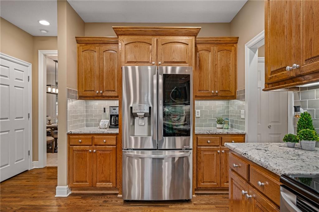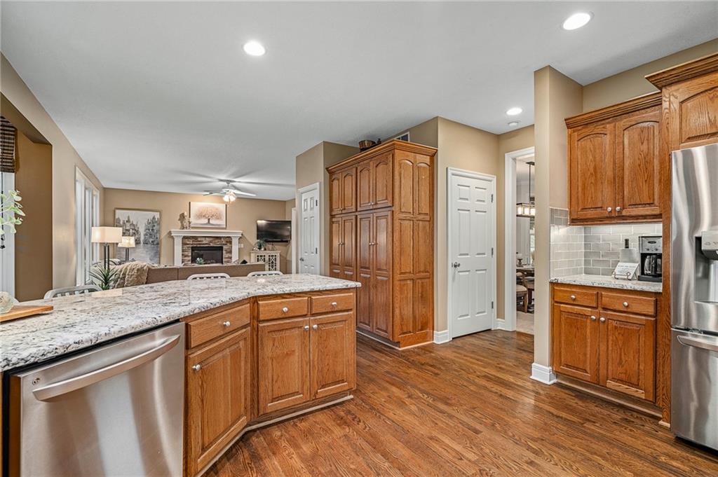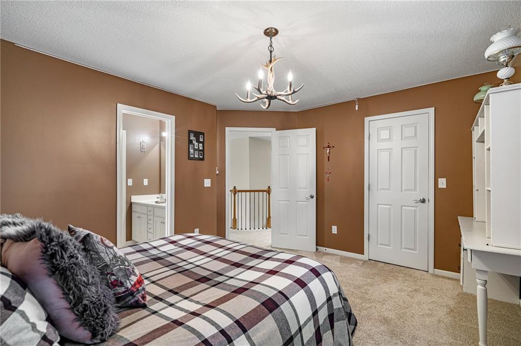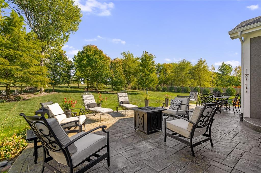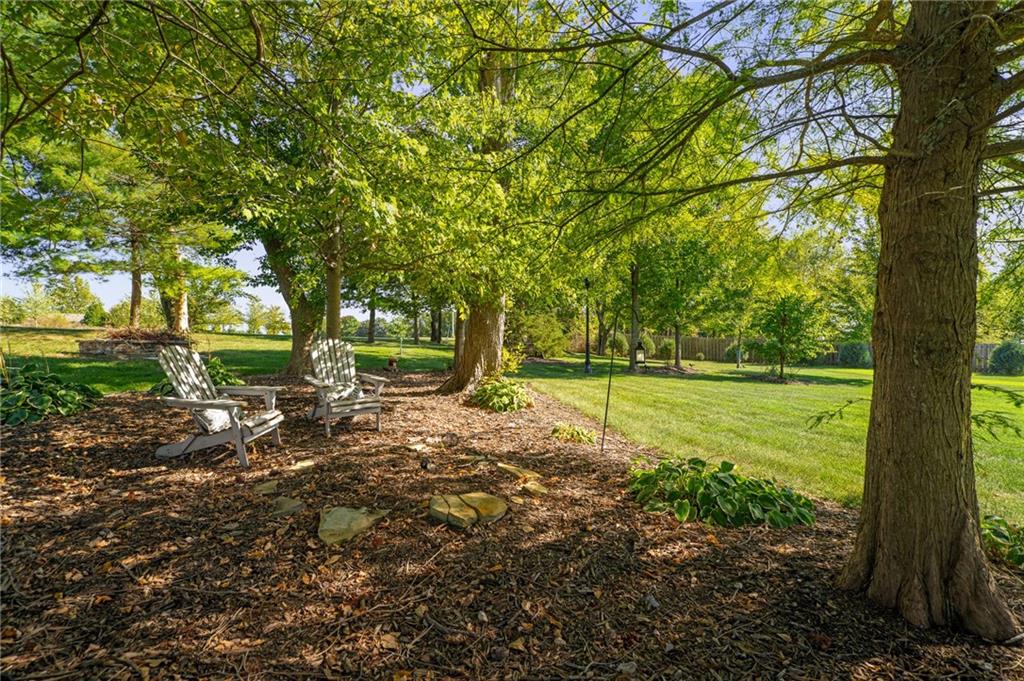 Morse Village Estates stunner! Picturesque setting on 1.1 acre lot surrounded with views of private, treed oasis. Main level flows seamlessly from the kitchen to the great room, den/study and entry or just a few steps outside to the expansive backyard patio. Primary bedroom offers a true retreat with sitting room, serene bathroom and oversized primary closet. Five car garage spaces including the must see 29'x38' detached garage for car or hobby enthusiasts, storage, sports, entertain/party or attic offers potential for added space, endless options! Roomy secondary bedrooms and closets. Secondary bedroom with wow-factor loft/bunk space. Lower level offers game room, media space, wet bar, half bath and cozy sitting area. New roof, full-yard irrigation system, updated kitchen counters, fresh paint, squeaky clean and beautifully maintained. Lot has space for pool, sport court and room to spare. Blue Valley Schools, trails, parks, restaurants, entertainment and highway access are all nearby.