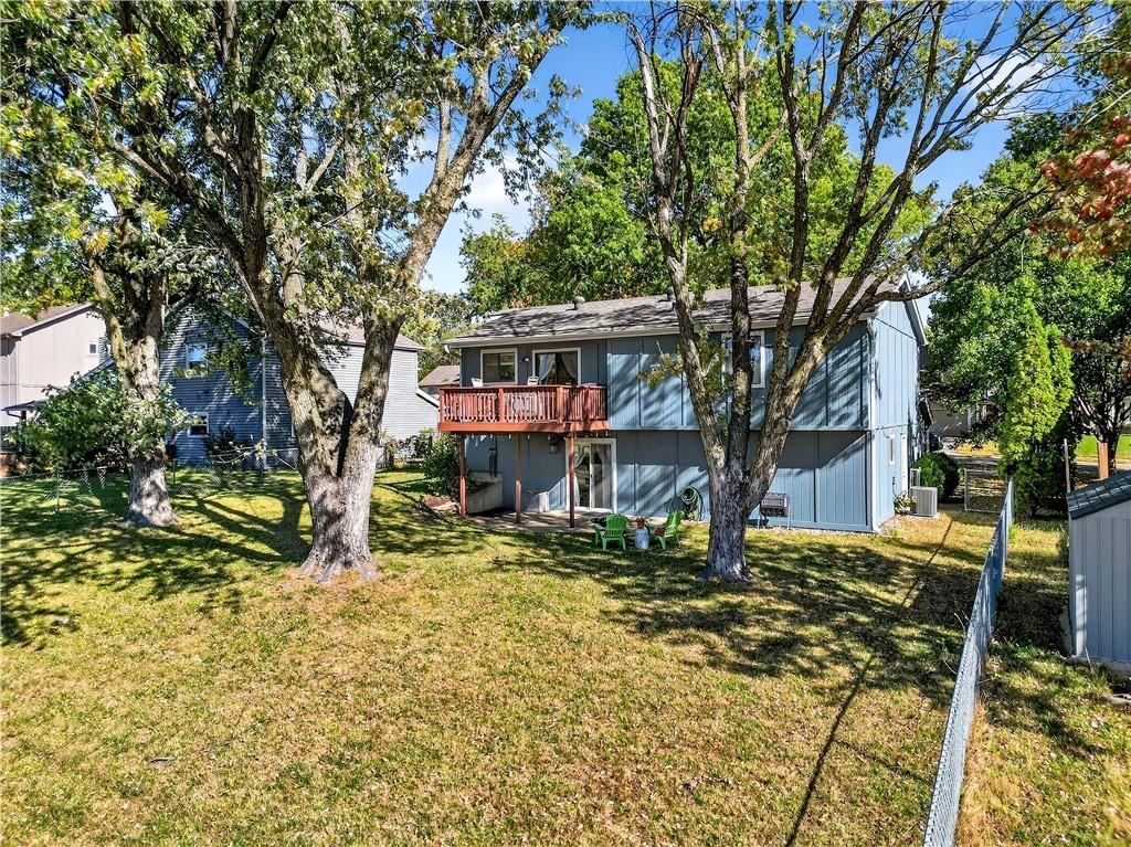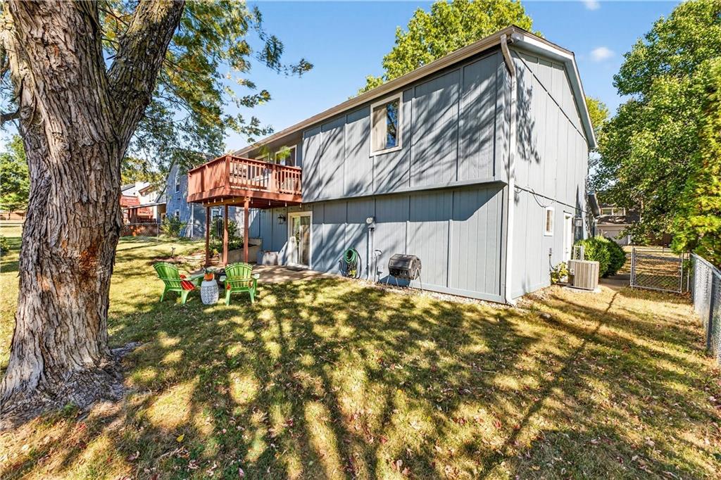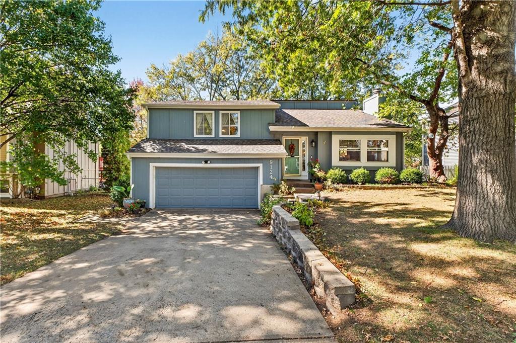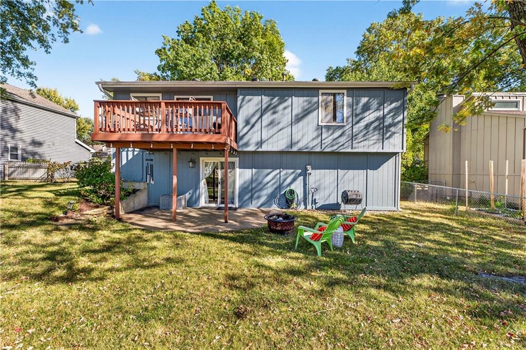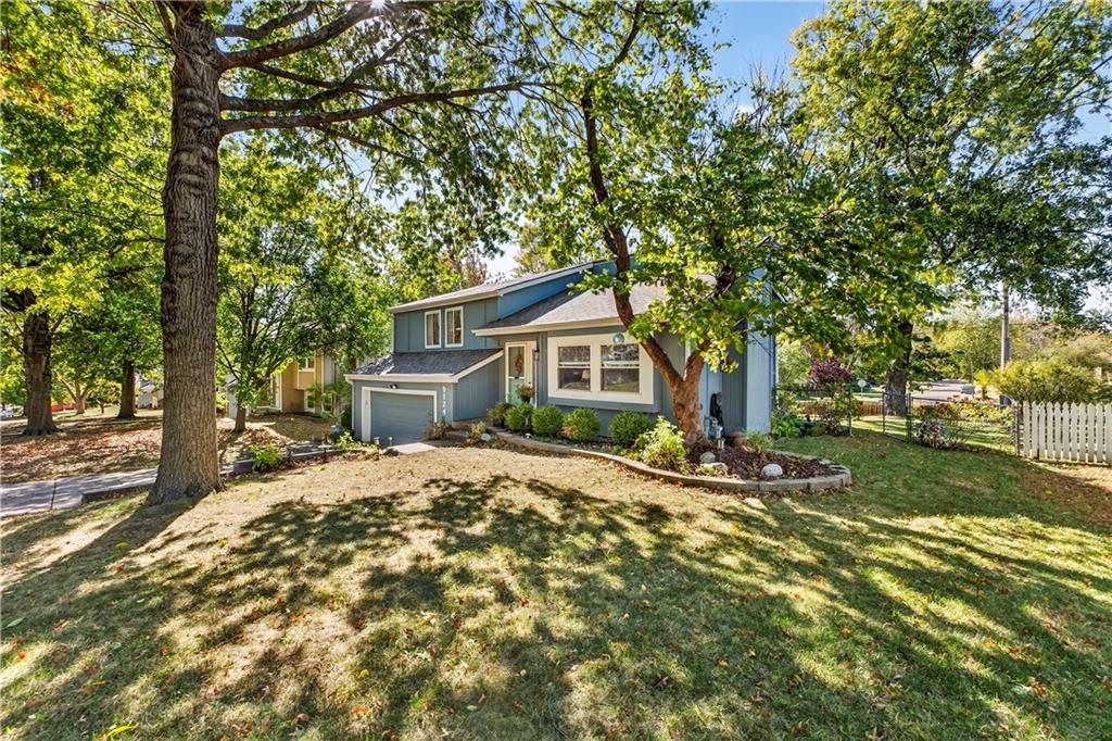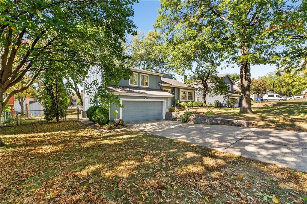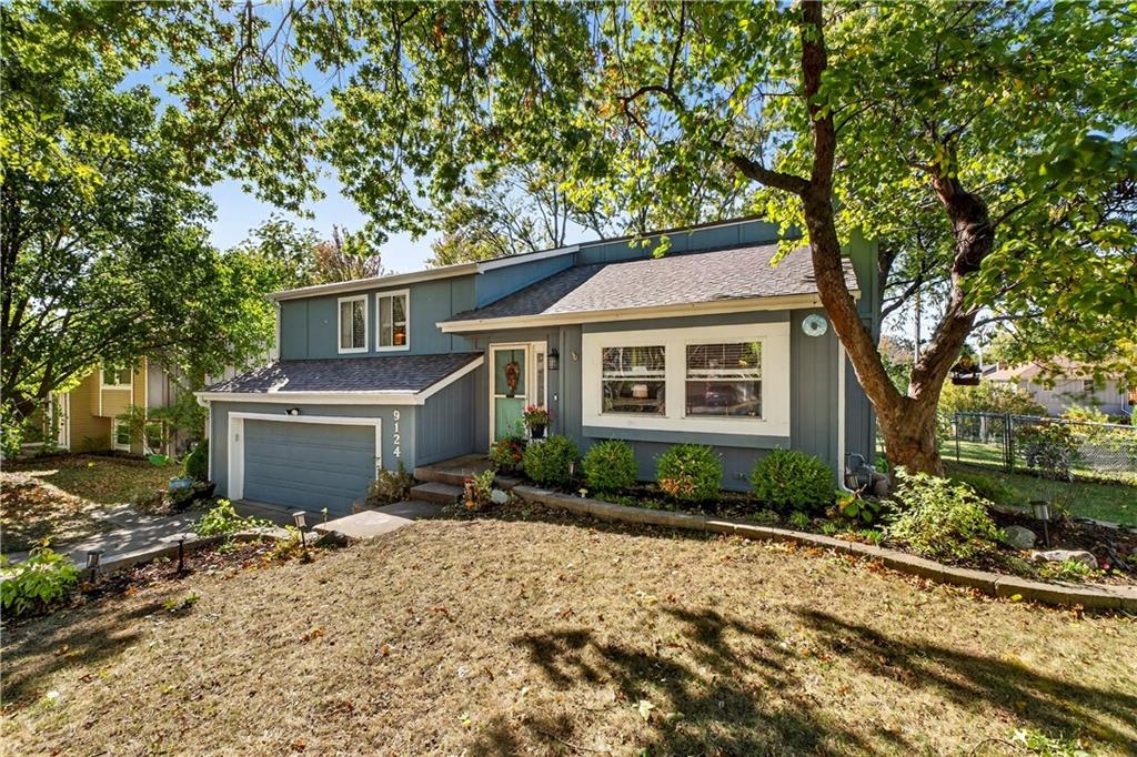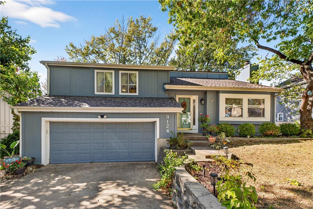 Beautifully maintained Lenexa front-to-back split. The kitchen features white cabinetry, granite countertops, a custom tile backsplash, and stainless steel appliances, opening to the dining area and overlooking the vaulted great room with a cozy fireplace and window seat. The primary suite offers an updated full bath and a spacious walk-in closet. Secondary bedrooms have great closet space. The finished lower level provides a versatile second living area and half bath, leading to a covered patio and fully fenced backyard with two outdoor living spaces, perfect for entertaining or relaxing. Recent updates include a newer roof and HVAC, fresh interior paint, and an updated primary bath. With a two-car attached garage and a prime location close to highways, shopping, and dining, this home combines thoughtful updates with everyday comfort and convenience.