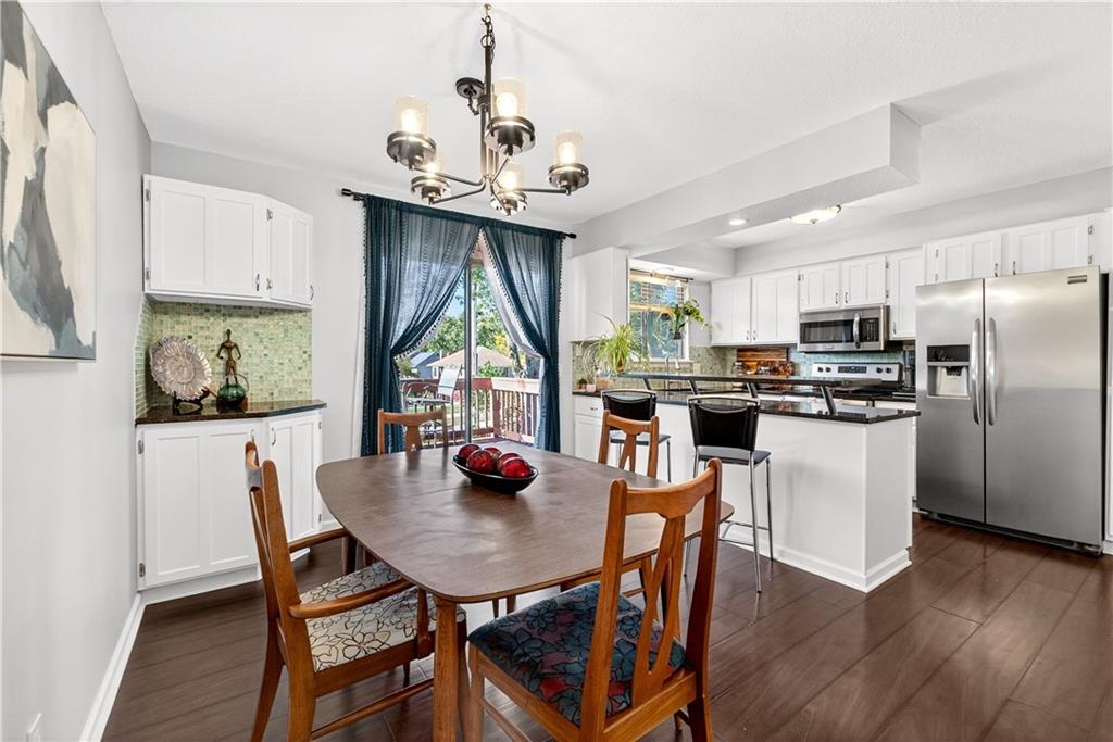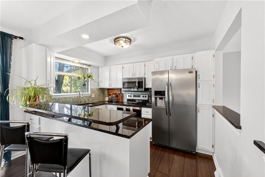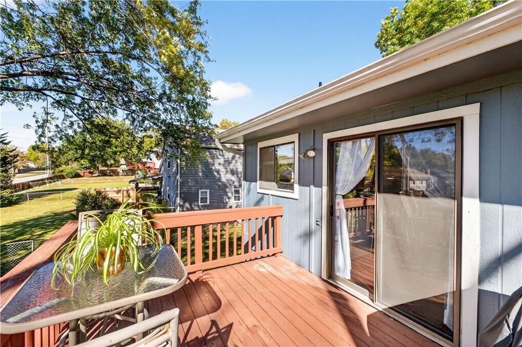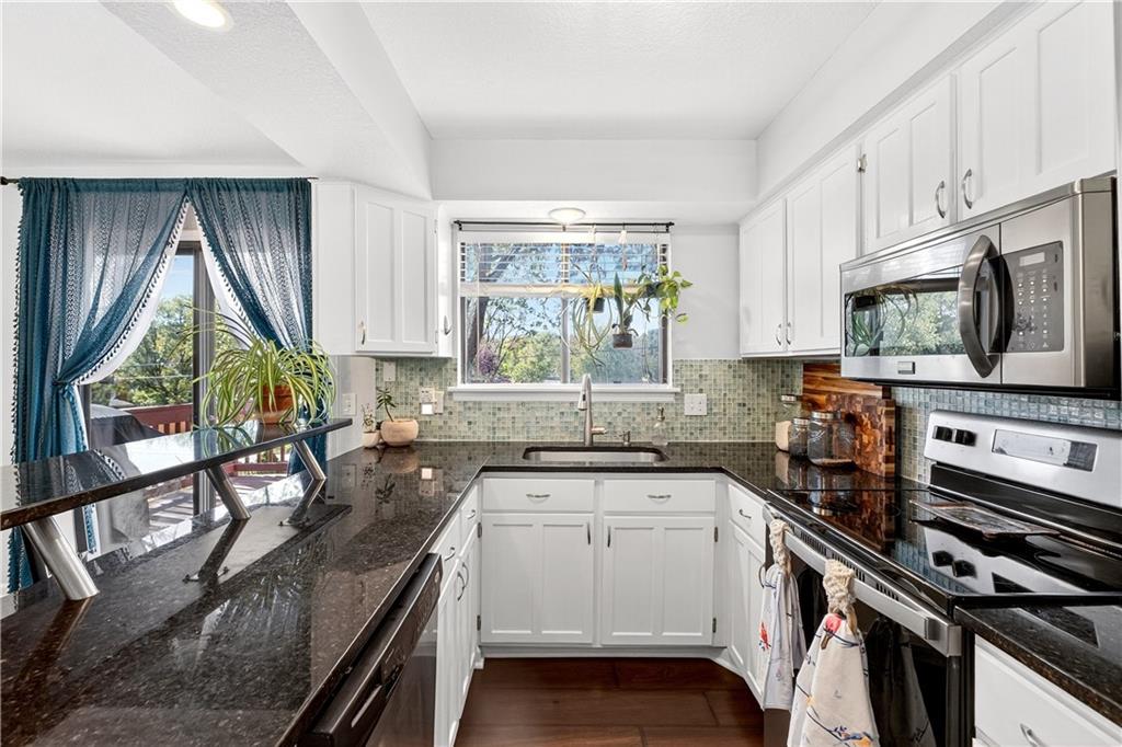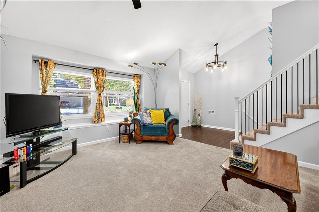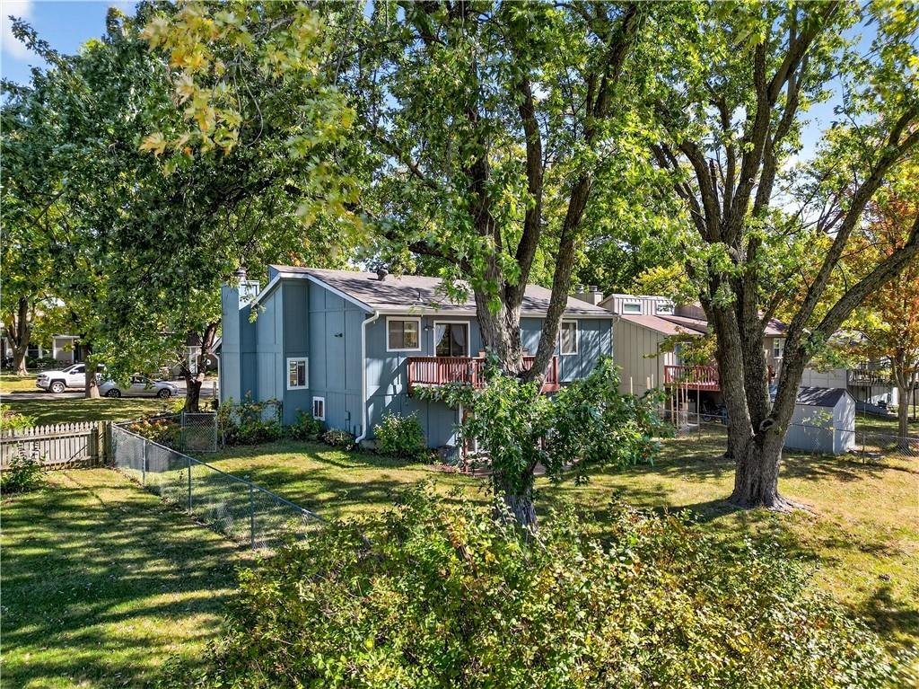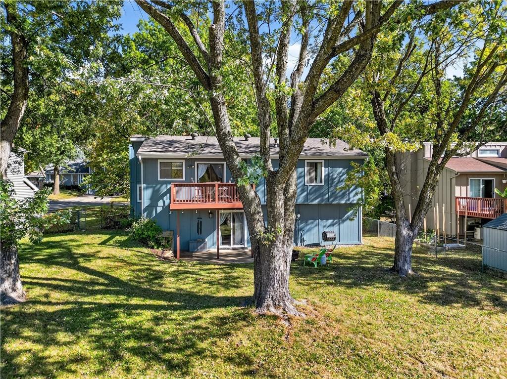 Beautifully maintained Lenexa front-to-back split. The kitchen features white cabinetry, granite countertops, a custom tile backsplash, and stainless steel appliances, opening to the dining area and overlooking the vaulted great room with a cozy fireplace and window seat. The primary suite offers an updated full bath and a spacious walk-in closet. Secondary bedrooms have great closet space. The finished lower level provides a versatile second living area and half bath, leading to a covered patio and fully fenced backyard with two outdoor living spaces, perfect for entertaining or relaxing. Recent updates include a newer roof and HVAC, fresh interior paint, and an updated primary bath. With a two-car attached garage and a prime location close to highways, shopping, and dining, this home combines thoughtful updates with everyday comfort and convenience.