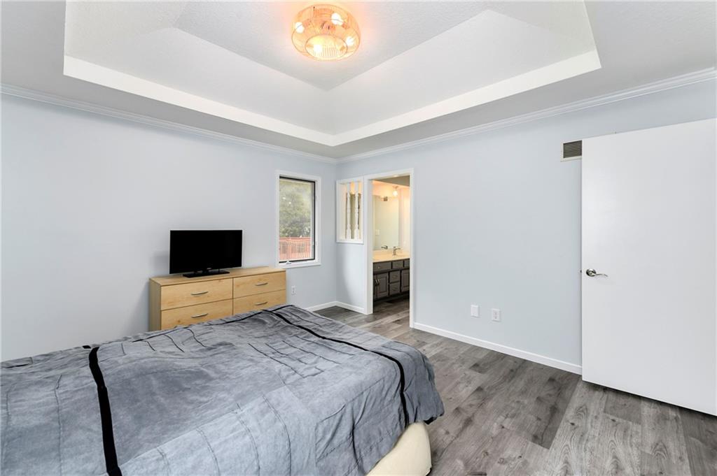 Welcome home!! Here's the perfect property in a great location in Lee's Summit you've been looking for! Raised ranch with some unique features and updates you'll love! There's plenty of space for your visitors to park with an expanded deck with 3 carports underneath and 2 car garage in back. For easy access and few steps, the front circular drive is a great addition. Upstairs, you'll find a spacious kitchen, laundry, living and dining areas with 3 bedrooms and 2 baths. Enjoy the living room fireplace for cozy, colder evenings and coffee or meals on the deck during the warm months! Downstairs, an additional bathroom, non-conforming bedroom (with fireplace), and living room provide a separate living space, complete with a walkout to the backyard with private greenspace and direct access to the spacious garage (with HVAC). Newly repainted, new flooring, added deck support and a one year old roof with transferable warranty make this raised ranch move-in ready just in time for you to move in by the holidays and make this house your home!