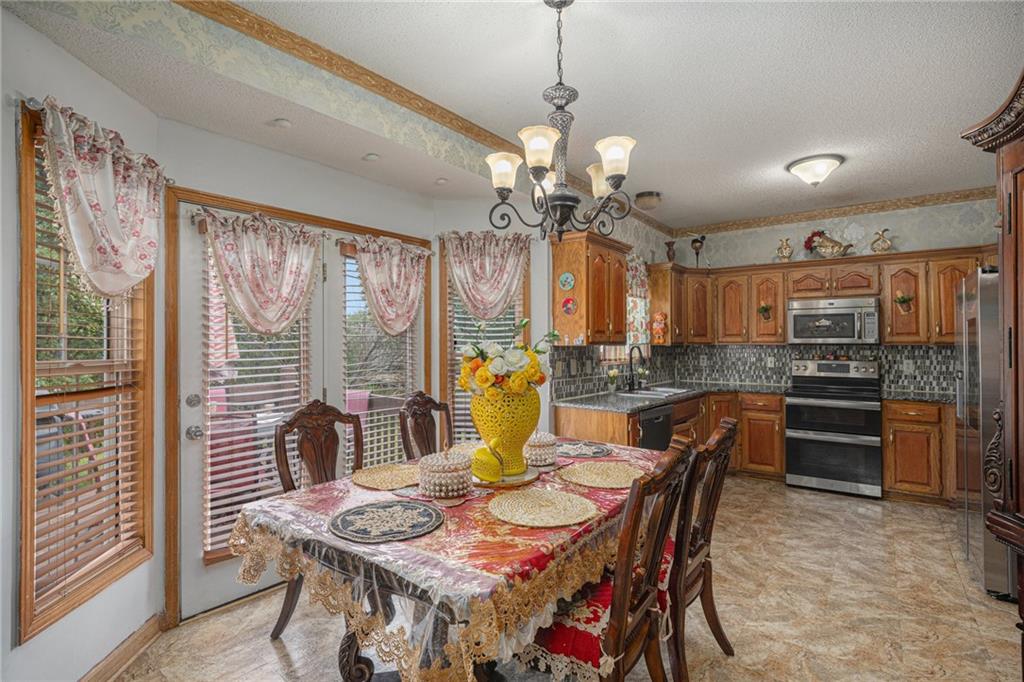 Nestled in the desirable Estates neighborhood of Lee's Summit, Missouri, this 5-bedroom, 4.5-bathroom residence boasts over 3,300 square feet of living space. The property features a fully finished basement, complete with a non-conforming room ideal for use as an office, gym, or guest suite. Constructed in 2001 by Kreisel Building & Development, this 1.5-story home is set on a spacious 11,363 square foot lot. facilities. The upstairs area includes a private master suite along with additional bedrooms, while the basement offers versatile living options. The home comes with a front-facing 2-car garage.