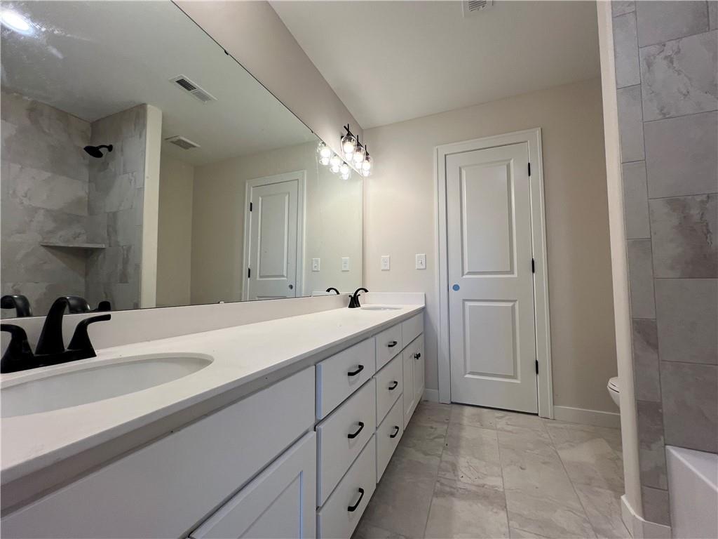 NEARING COMPLETION!! Final photos coming soon! Dream lot with the perfect balance of lake view and greenspace access. The 5th bedroom on the main floor could be the ideal place for a guest or office. Incredible kitchen with oversized granite island and upgraded, level 2 quartz tops. Grand prep-style pantry with tons of storage. Custom trim wainscot accent wall in the dining room. Soaring trim accent wall in the stairwell. Oversized Master Bedroom Suite includes an amazing a customizable lighted vault. Attached Master Bath includes an oversized vanity with a custom framed mirror, quartz vanity top upgrade, and matte black plumbing faucets. Sleek freestanding tub and 3 vertical levels of storage in the master closet with custom-designed shelving. Large secondary bedrooms, all with walk-in closets. Secondary baths also include matte black plumbing upgrades and quartz vanity top upgrades. A sprinkler system is included in the sodded areas with remote port access. Custom 2-inch faux wood blinds are included. Garage door openers and a keypad is also included. Taxes and Square footage are estimated.