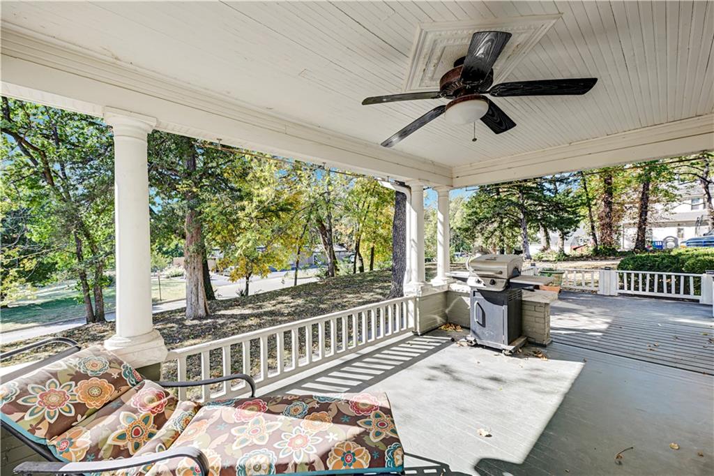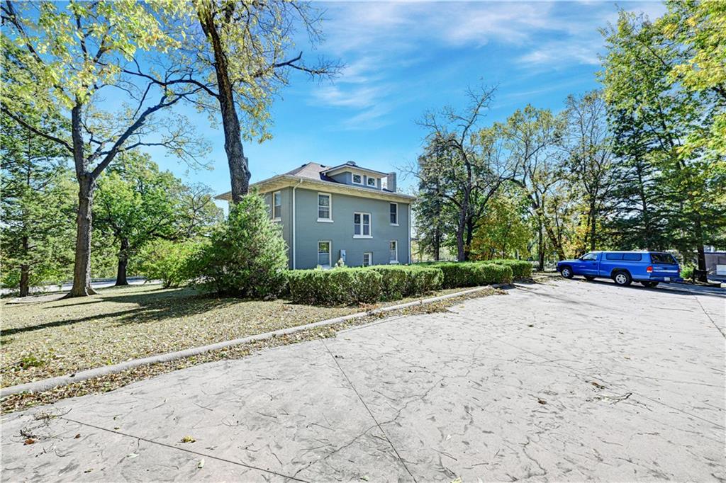 Don't Miss this Unique Opportunity to Own a Piece of History! Elegance & Charm Abound in this Spacious & Functional Home! Enjoy the 2 Inviting Covered Porches (on front & side of home), Beautiful Hardwoods Throughout, Amazing Built-Ins, Natural Wood Trim & Moldings Galore, 2 Fireplaces, Updated Kitchen with Granite Counters, New Stainless Steel Appliances, Stately Formal Living & Dining Rooms, The Kitchen/ Extended Bar is Perfect for an Extra Prep Area & Cooking & Entertaining in Style - & so Much More! It's the Perfect Floorplan with a Full Bath on the Main Level, 2 Staircases Going Up, 4 Bedrooms & one Full Bath on the 2nd Level and then the "WOW" Factor Family Room/ Mini Apartment on the 3rd Floor! New Boiler has Been Installed (heating bills are 50% lower!) )as well as a Newer Sewer Line, Tankless Hot Water Heater, Shed, & All Newer Concrete Parking Area, Driveway & Walkways. Unbelievably Solid Foundation & a Clean Beautiful Basement - Can Be Used for Workshop, Craft Room & More! The Location is Totally Central with Easy Access to Downtown, Lawrence, OP & Leavenworth - Hop Right onto I-70!